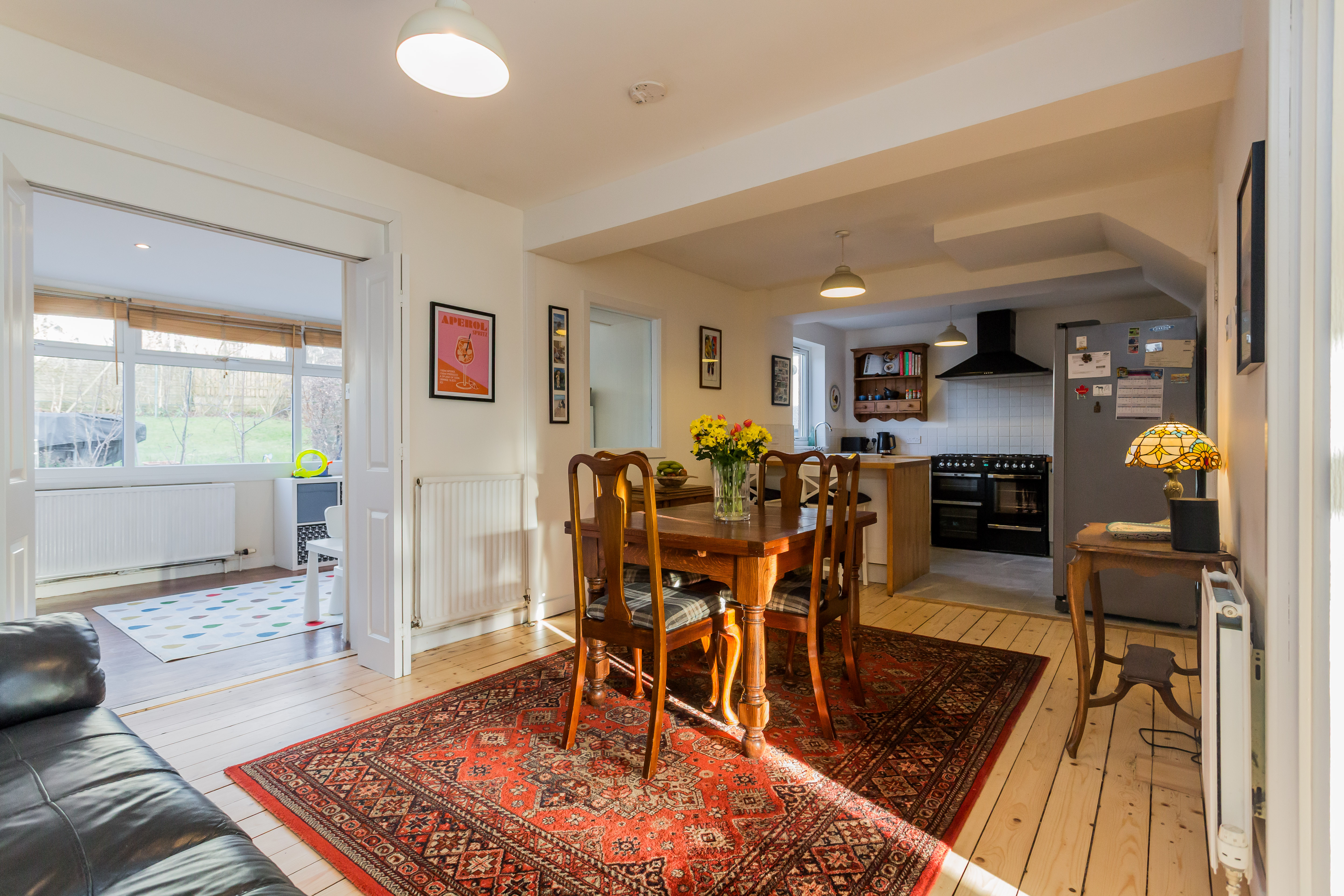 There is an entrance hallway that greets you as you come into the house via the front porch. The house has been extended to the side and so there is a handy area for hanging coats immediately on your right as you come in. The principle lounge is on the left and has a bay window to the front and an open fire for cosy autumn evenings. One of the most impressive spaces in the house is the open plan kitchen diner. The kitchen has been extended to the side so it creates a superb space to cook, socialise and entertain. With doors leading to the lounge and the garden room at the rear, it allows all the living spaces to flow effortlessly. The kitchen has a breakfast bar and appliances including a range cooker and twin, Belfast style sink. The extension has also created a useful pantry/ utility cupboard. The garden room offers a further flexible public space with views to the rear of the house and a stable door leading out. Completing the ground floor is a handy shower room.