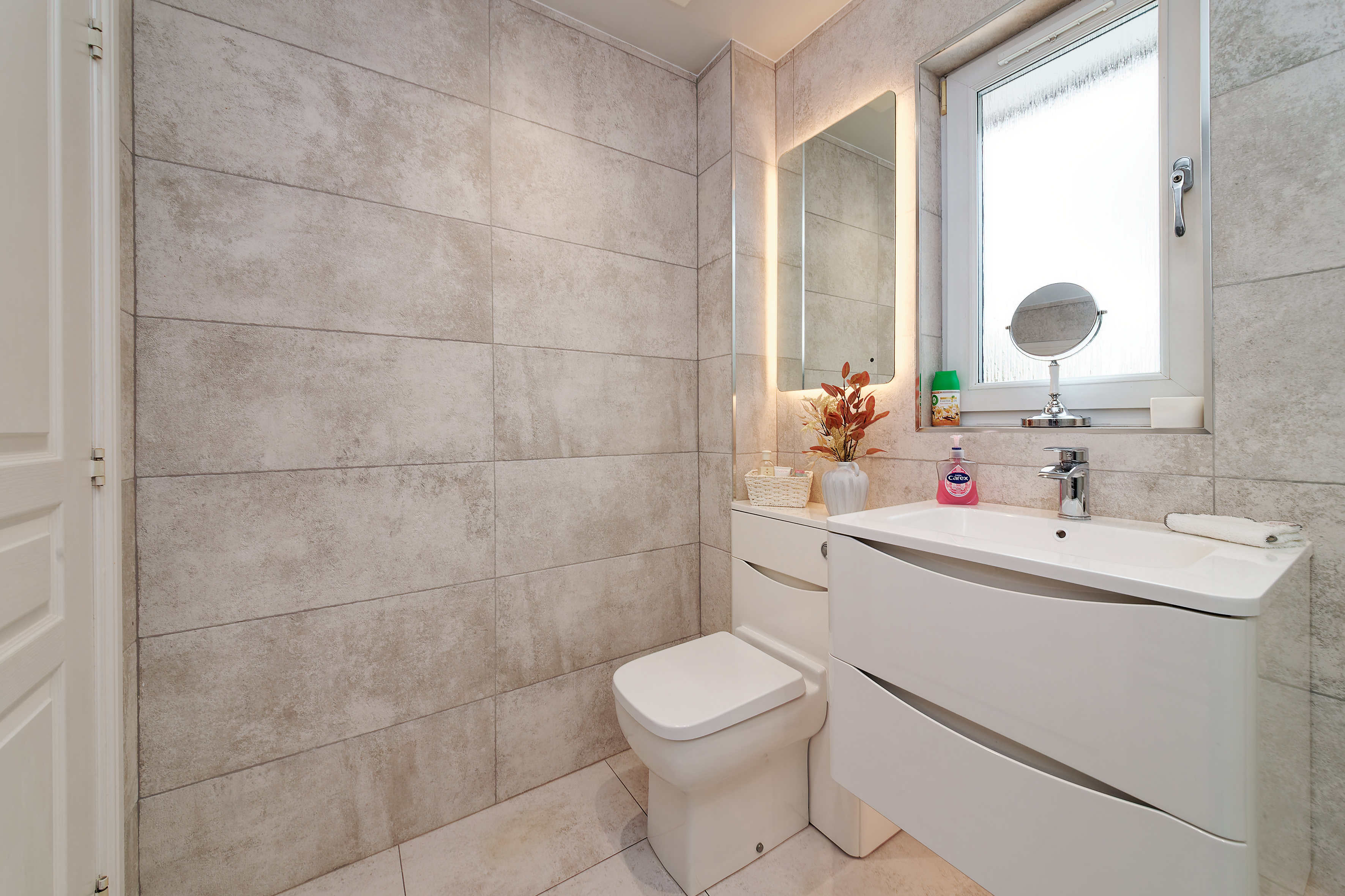 The bright and welcoming entrance hallway features a convenient ground floor WC and leads through to the stylish living spaces.