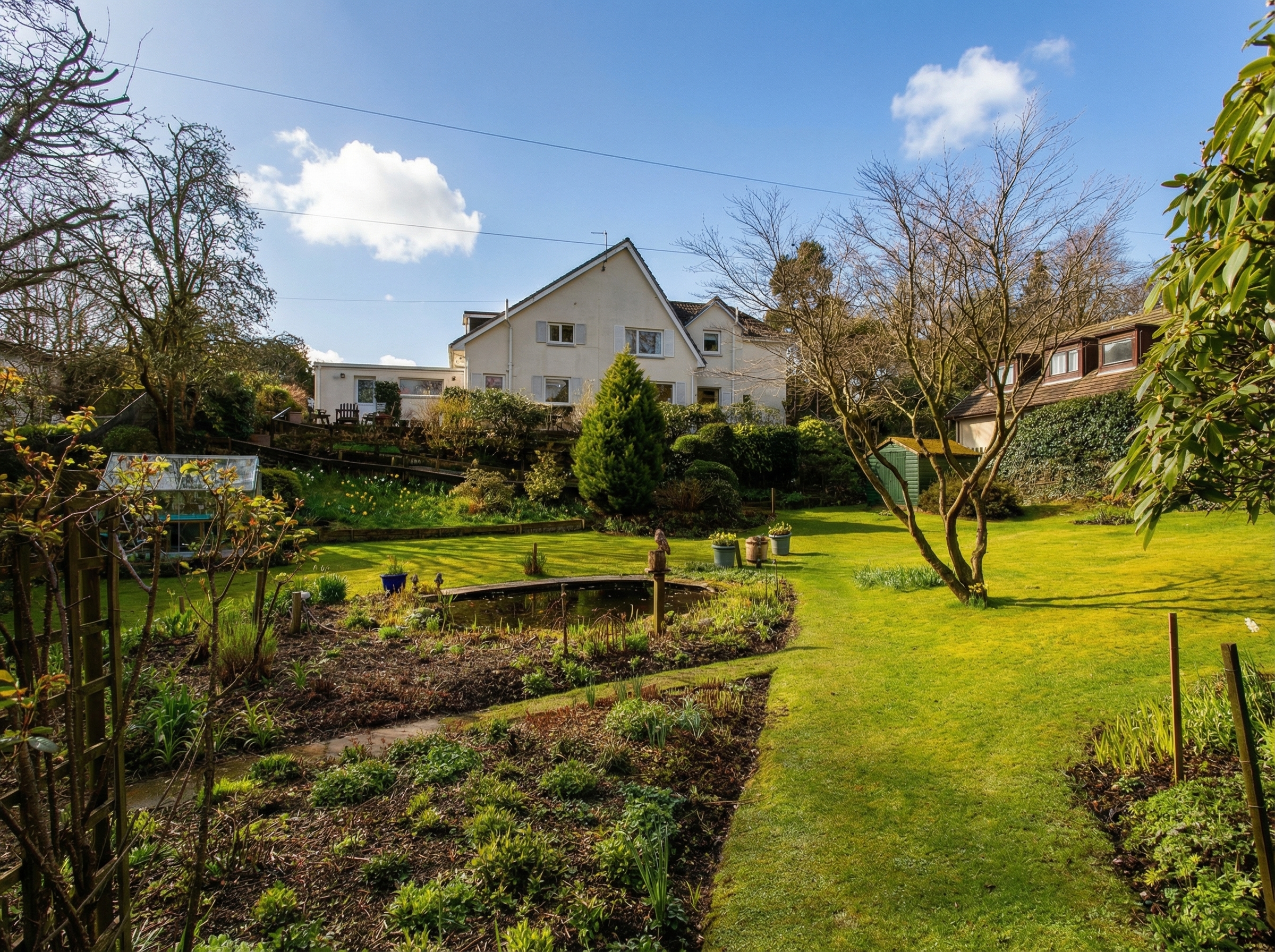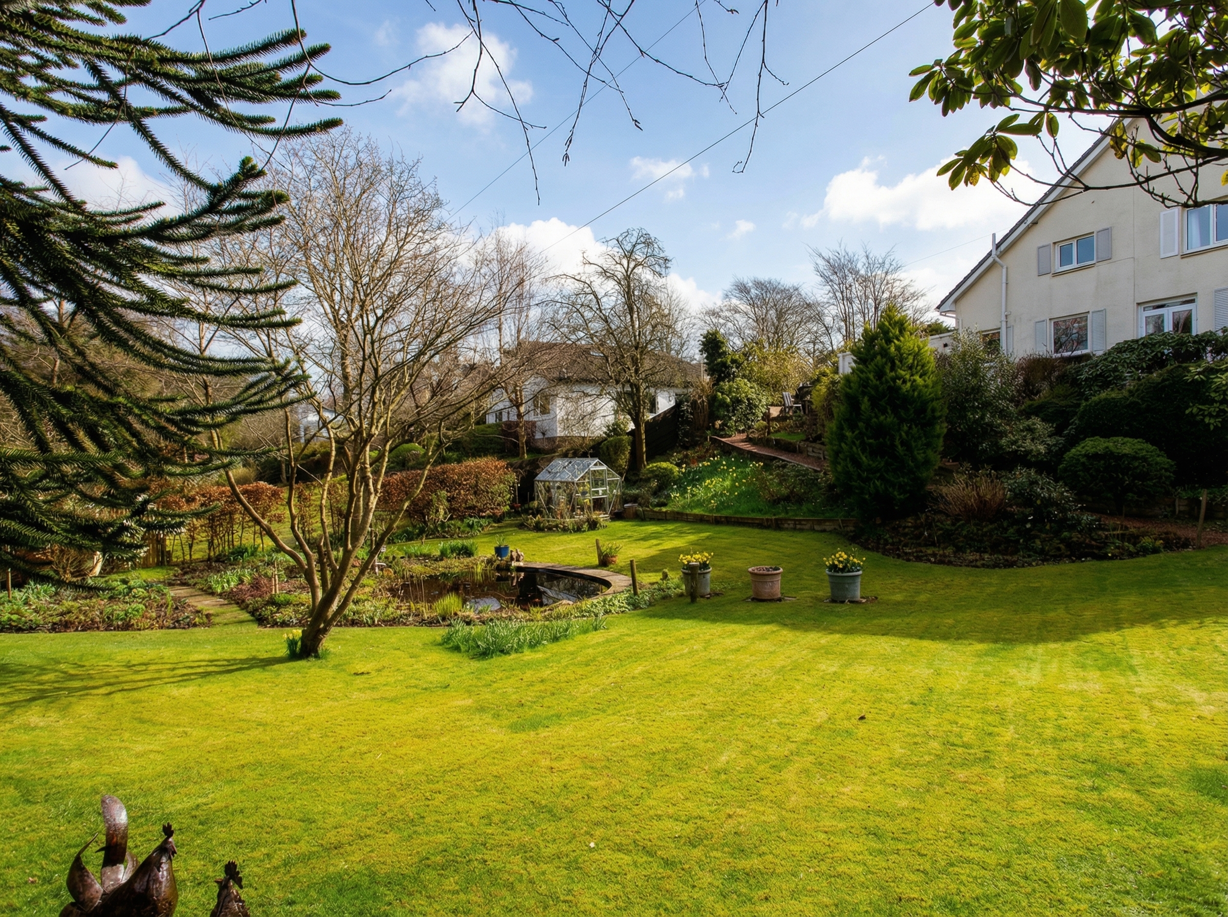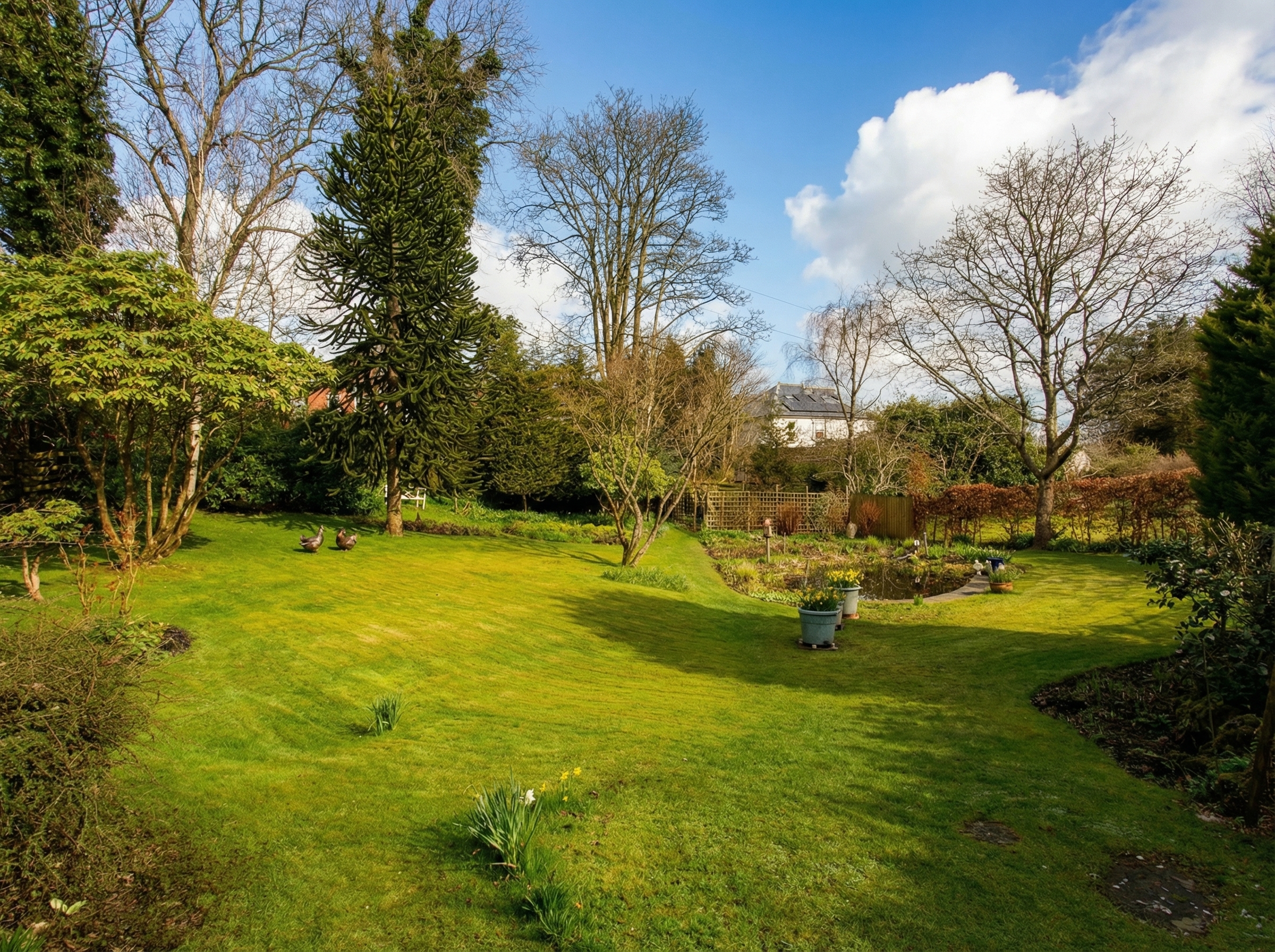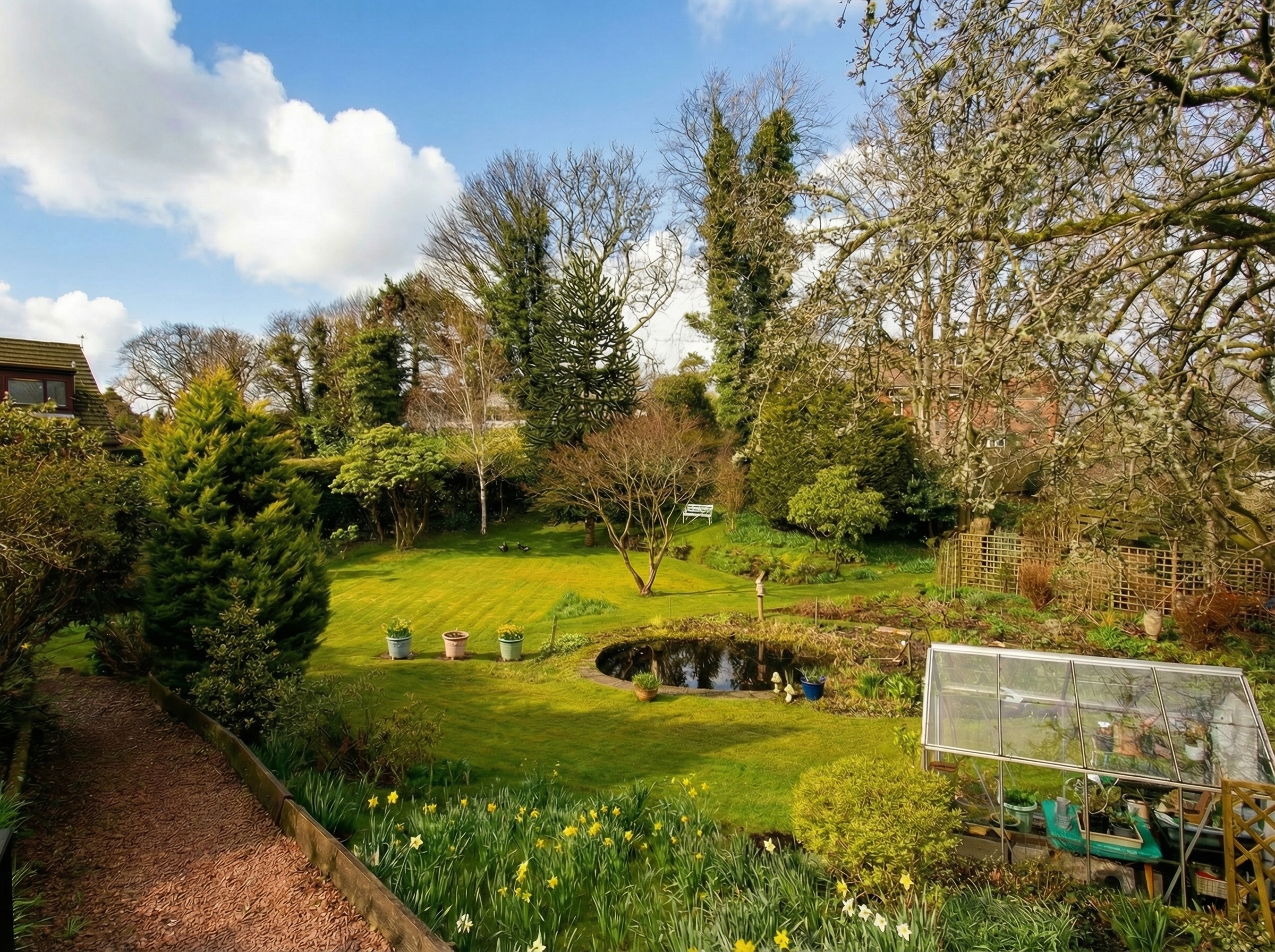 Externally, the property continues to impress. A double garage with electric door is complemented by a gated, stone-chipped driveway providing ample parking. To the rear lies a truly outstanding garden—an idyllic, private haven boasting a tranquil pond, mature planting, established trees and a beautifully maintained lawn. It’s a space designed to be enjoyed year-round, whether entertaining, relaxing, or simply soaking in the peaceful surroundings.