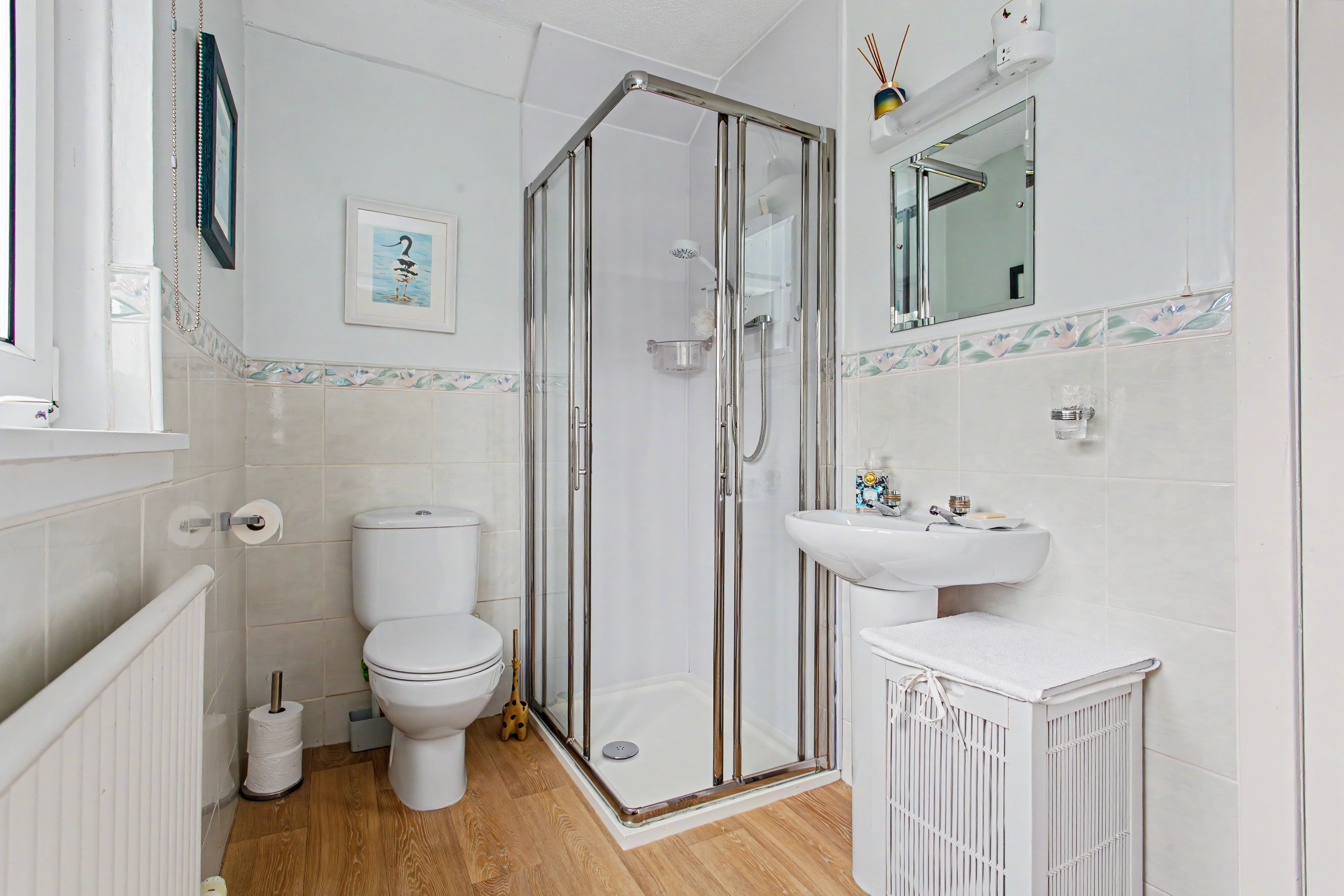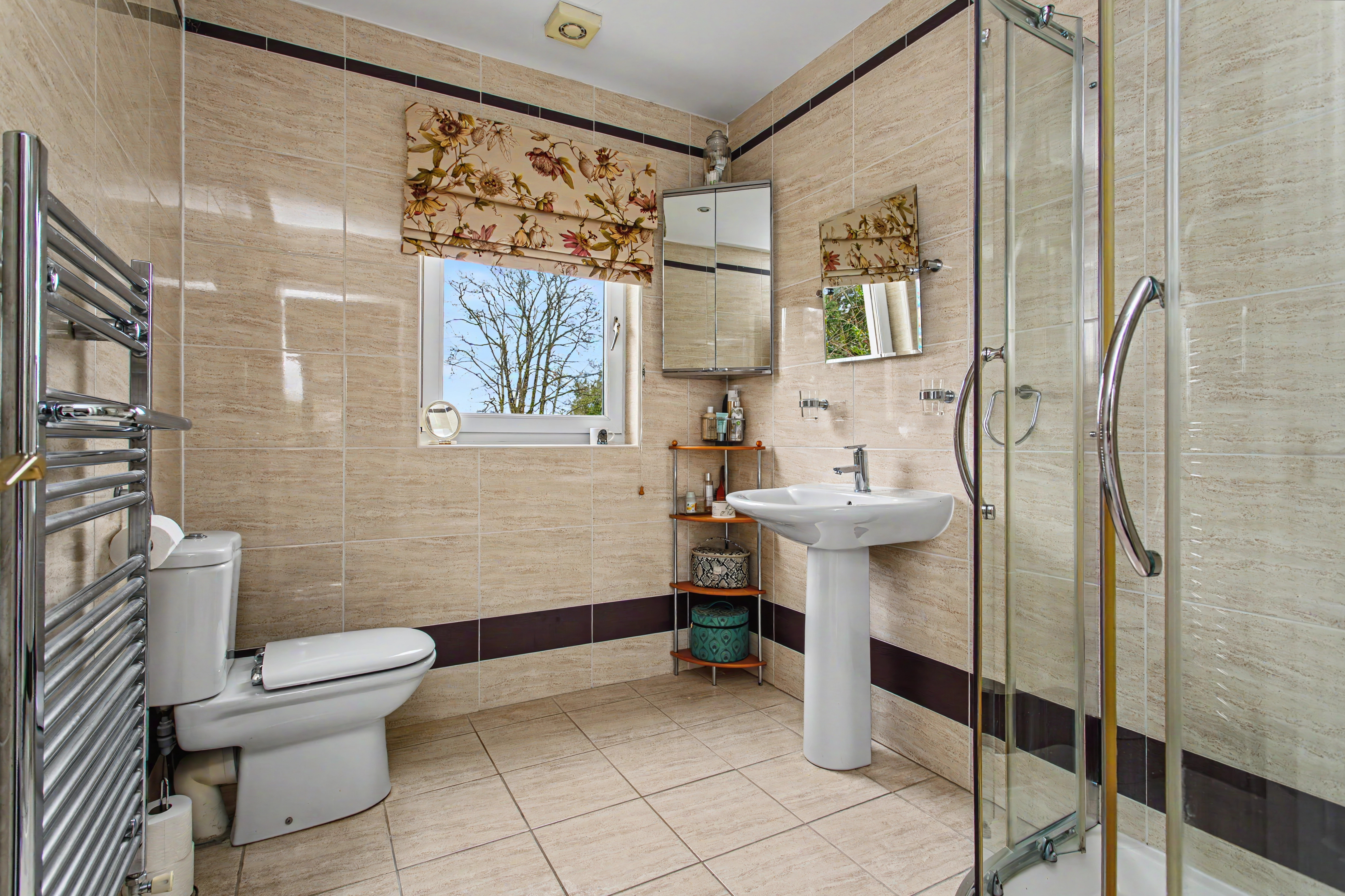 Upstairs, there are four well-proportioned bedrooms and a stylish family bathroom. The principal bedroom benefits from double fitted wardrobes and a private en suite shower room, while bedroom two enjoys a Jack and Jill en suite arrangement. The family bathroom is beautifully presented, featuring a four-piece suite with both bath and separate shower.