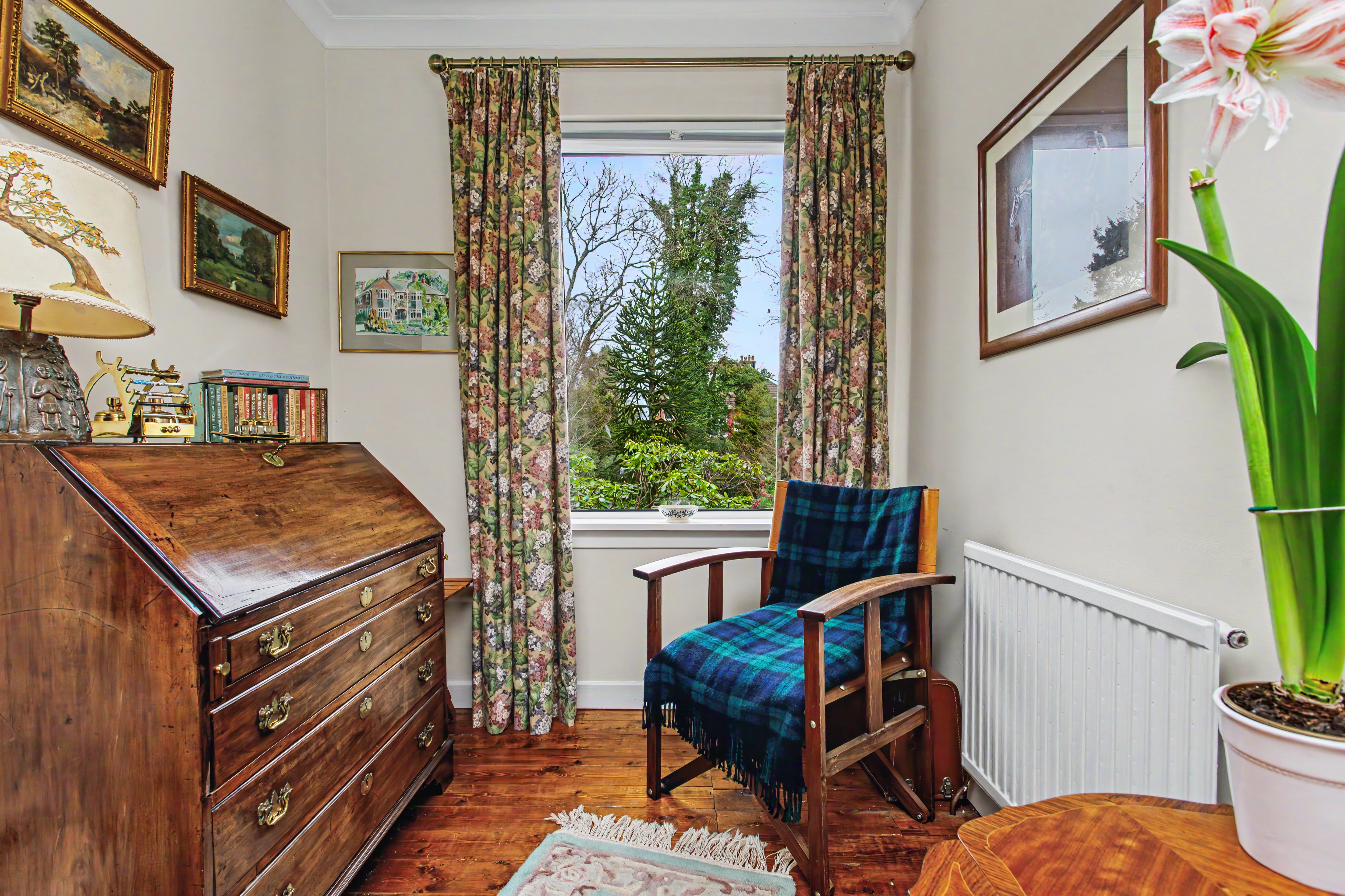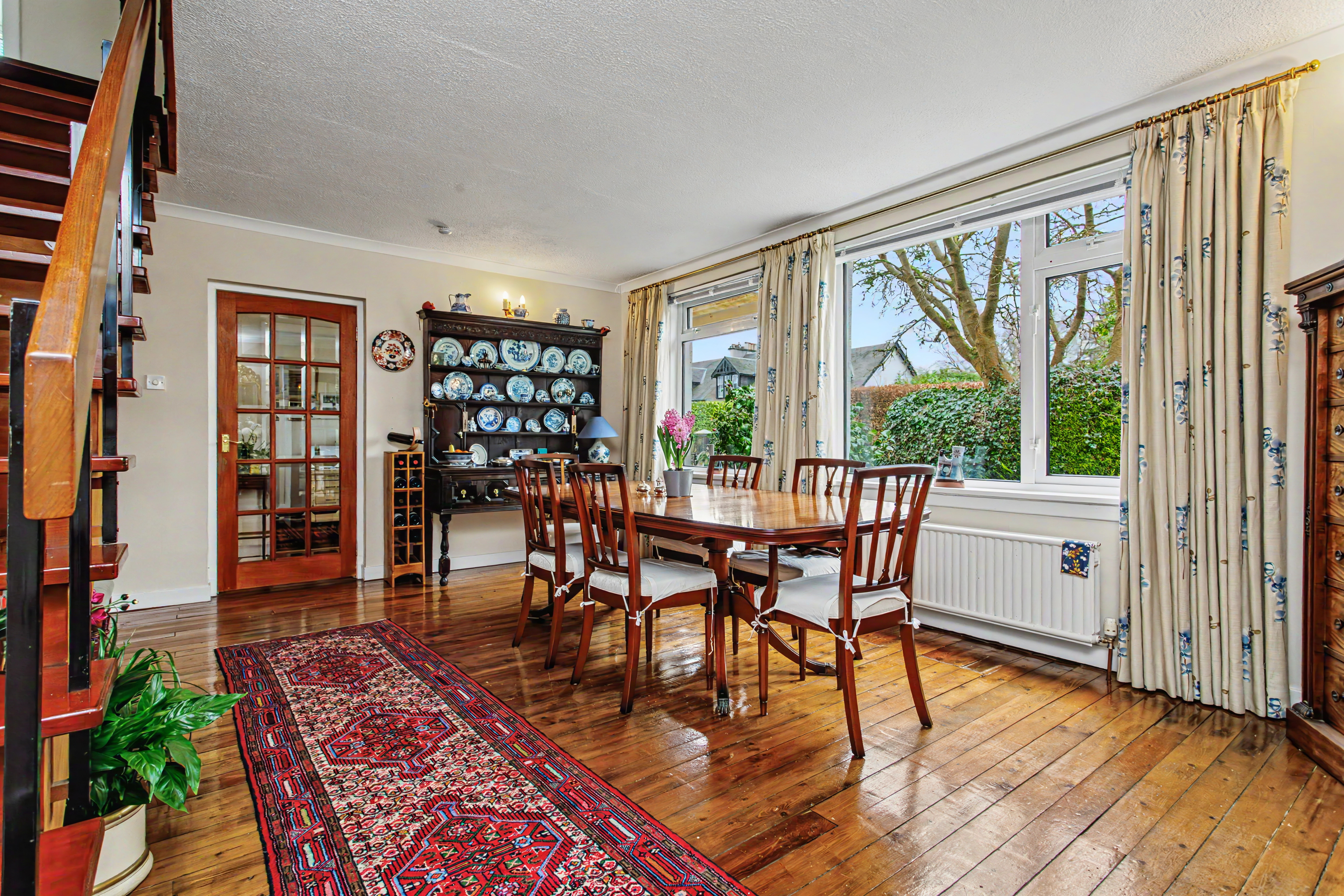 The home provides generous and highly versatile accommodation, thoughtfully designed to suit modern family life. On the ground floor, the principal living room is a wonderfully bright and airy space, enjoying dual aspects to the front and rear. A spacious dining room features beautiful exposed timber flooring, rich in character and history, having been reclaimed from traditional Glasgow tenements. To the rear, a cosy garden room offers a relaxing retreat, complete with French doors opening directly onto the garden—perfect for indoor-outdoor living.
