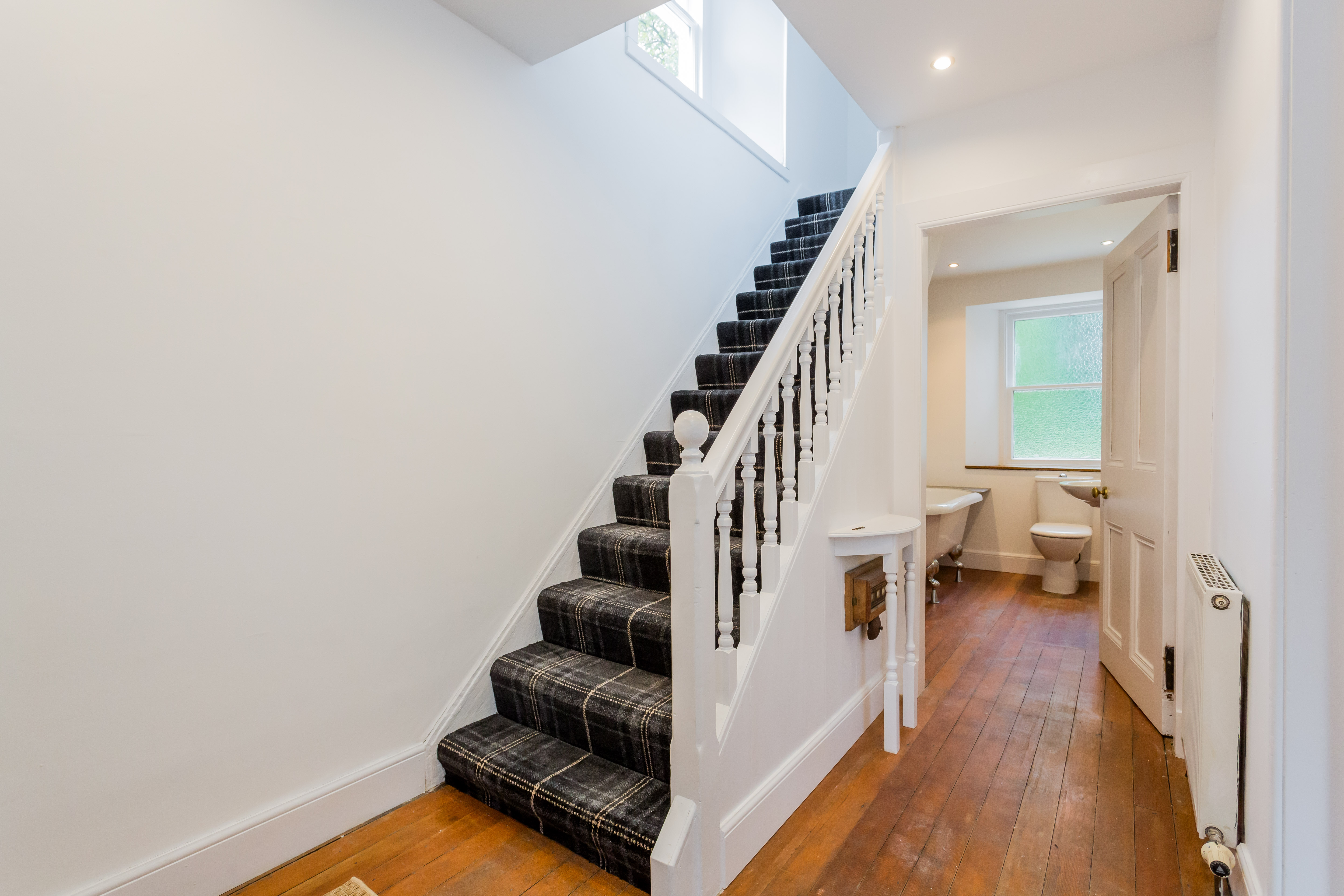 A newly laid carpet on the stairwell leads to the first floor where there are two double bedrooms, the principal having the benefit of an en suite shower room.