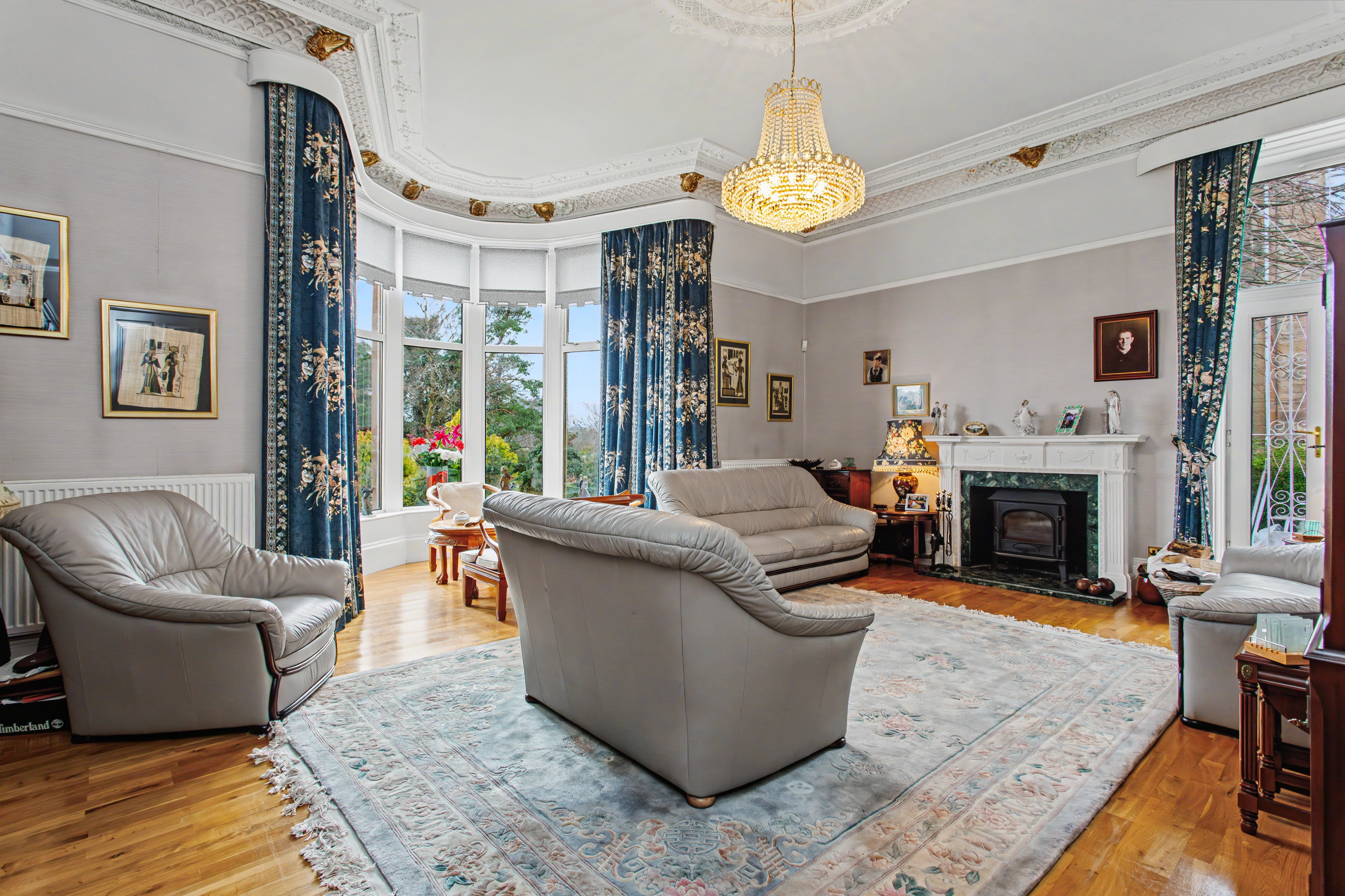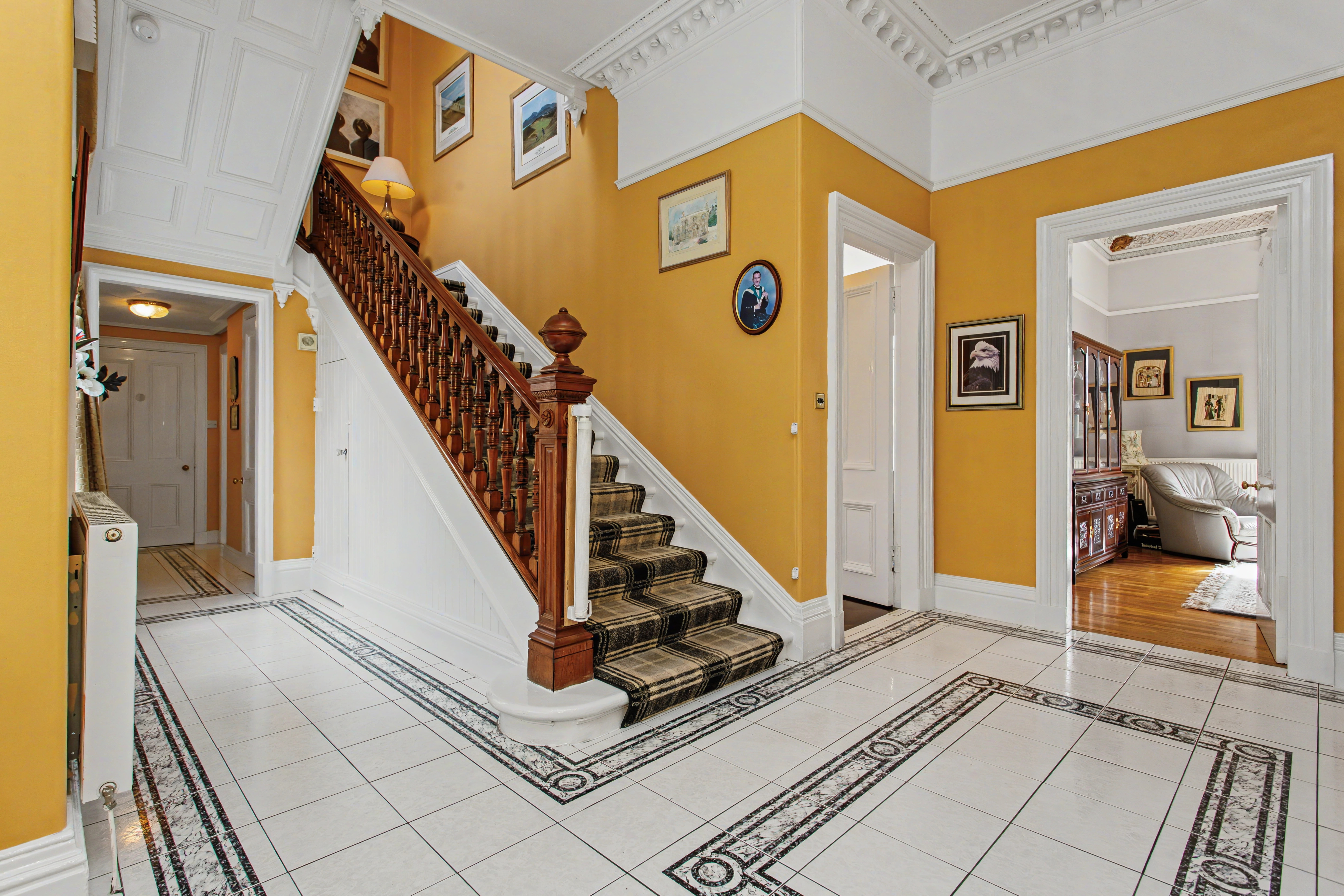 An entrance vestibule leads to the broad reception hallway. There is generous accommodation with a flexible layout suited to both family living and elegant entertaining. High ceilings, (3.5m), large windows, and traditional features combine to create a sense of space and timeless charm throughout.