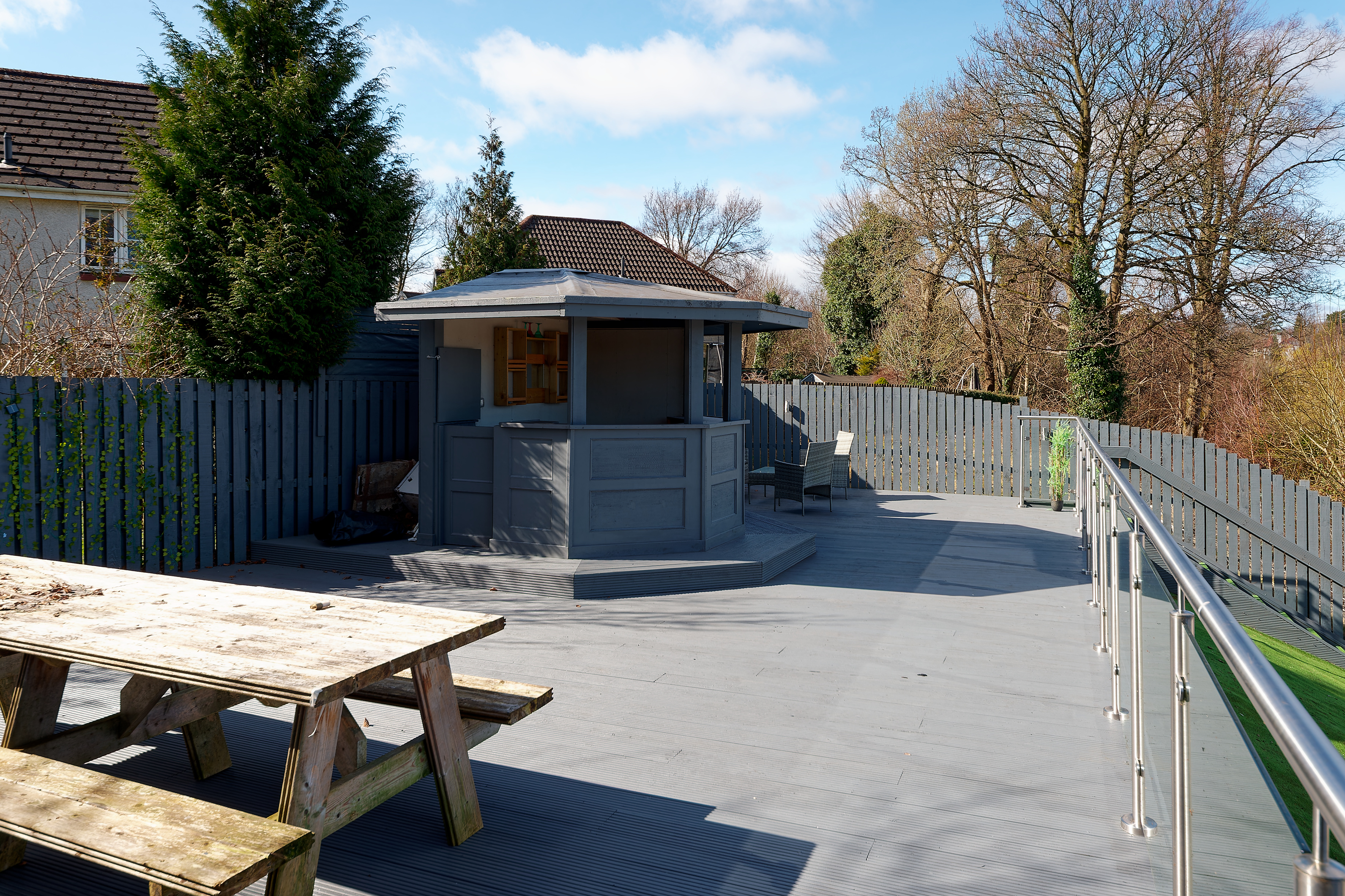 Th back garden has been landscaped to make the most of the plot and is now tiered. There is a large patio area, perfect for barbeques and al fresco dining and at the top of the garden is a generous timber deck with a Tiki bar and some great views.