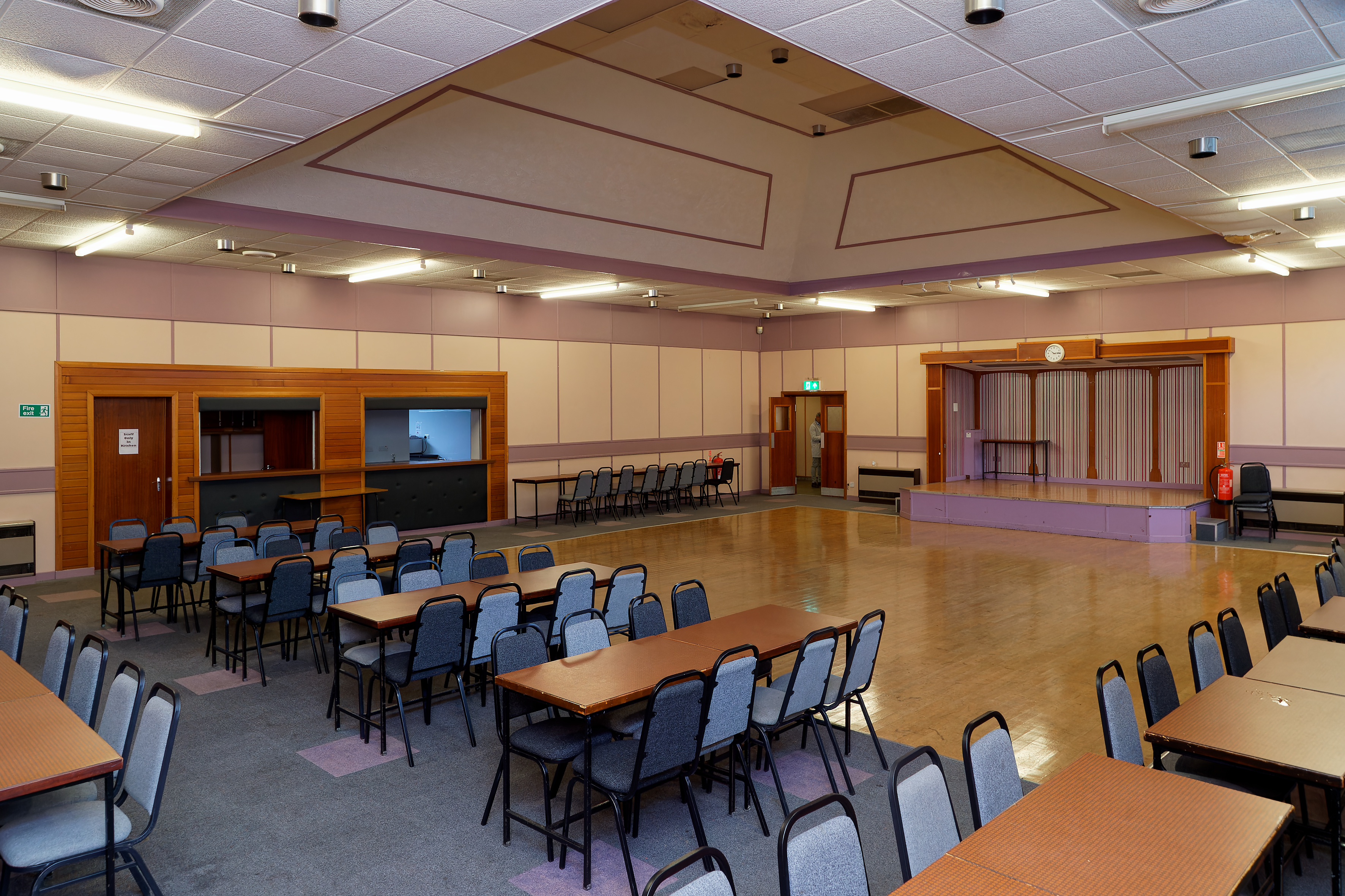 The current accommodation consists of a fabulous 200sq m hall in the centre of the property complete with stage and several rooms off for either meeting rooms or offices. There is a ladies, gents and WC as well as a substantial kitchen facility complete with two serving areas and ample storage.