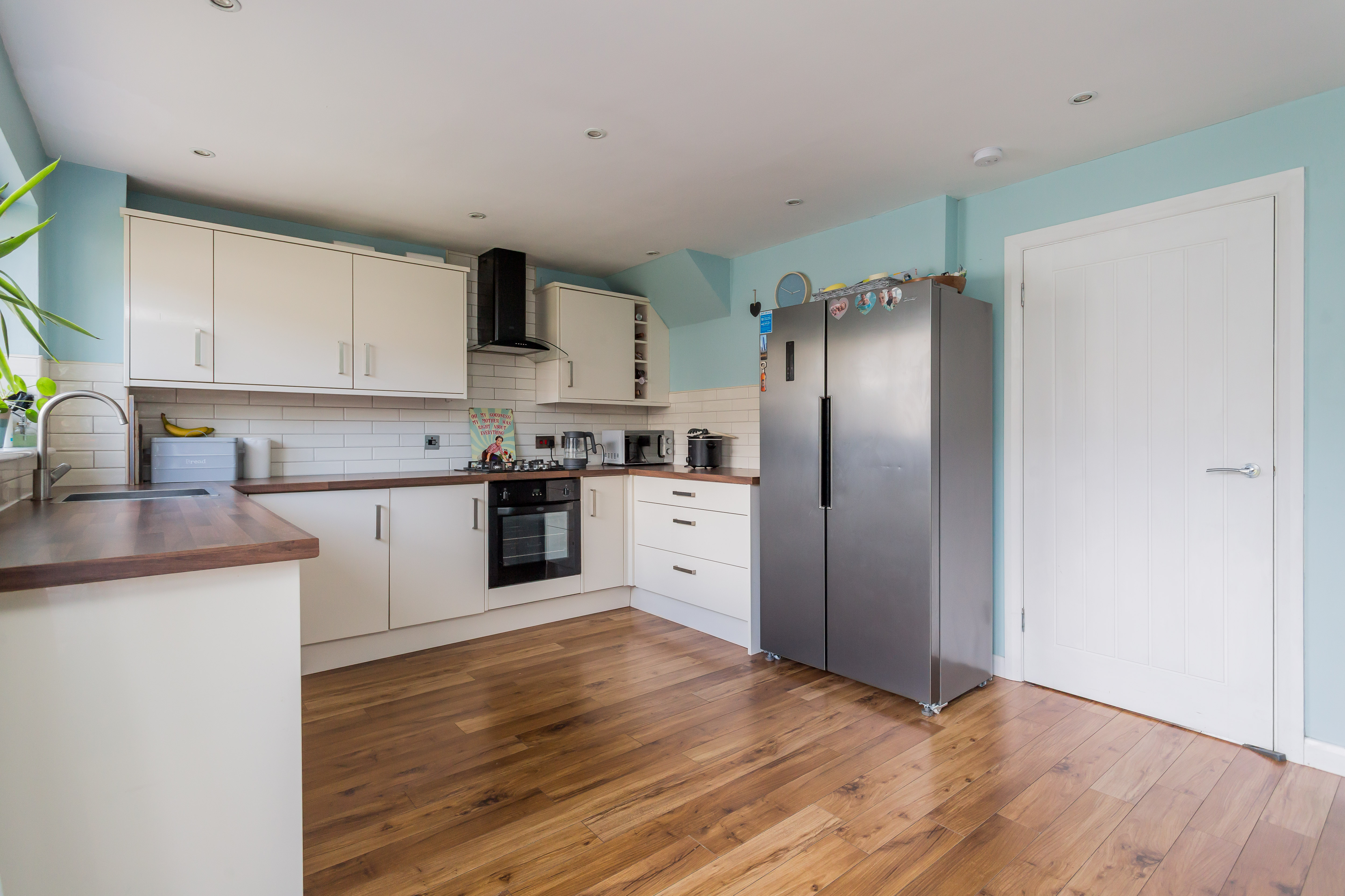 Appliances include an oven, hob, dishwasher, washing machine and space for a fridge freezer.