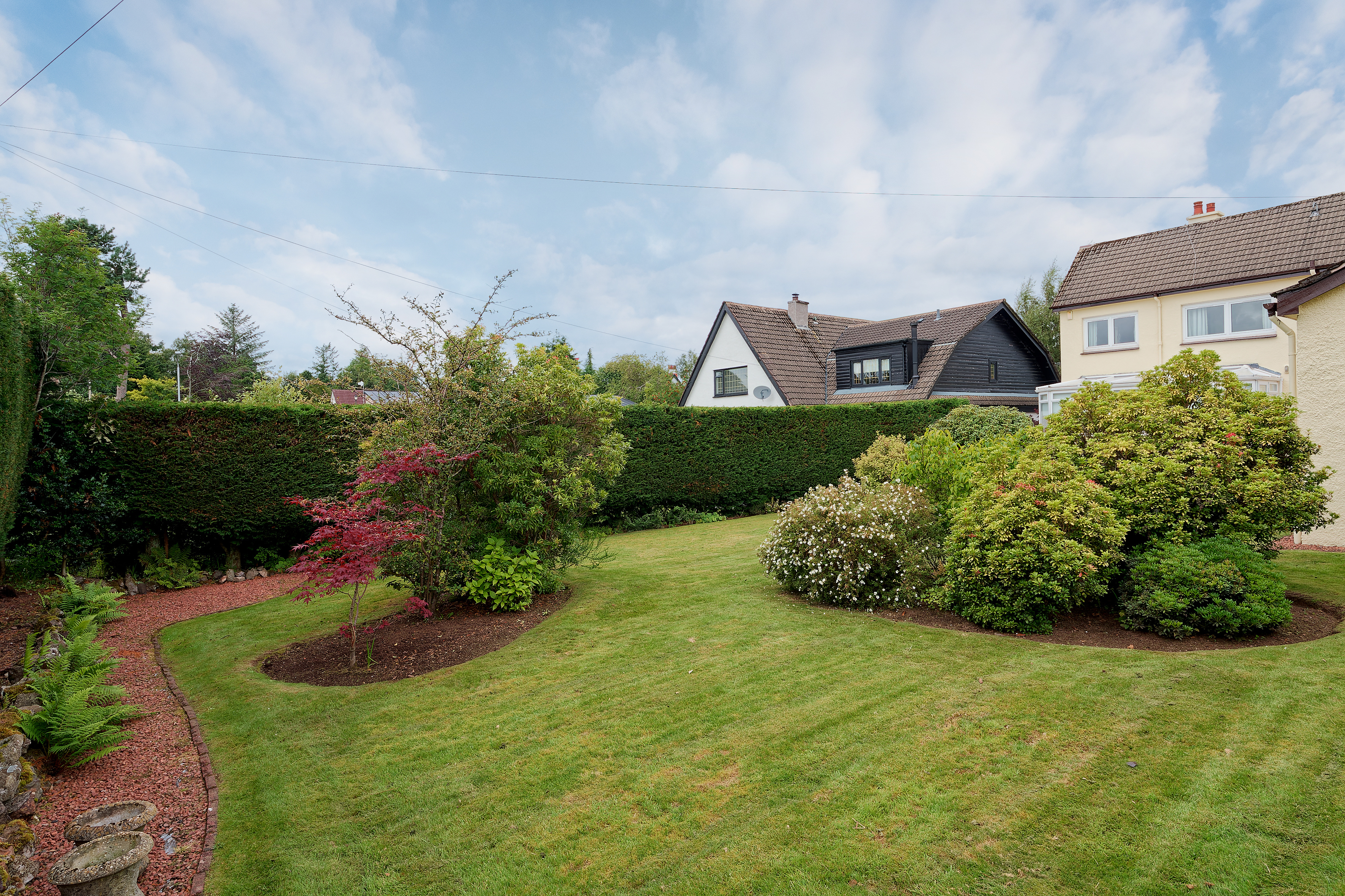 The prestigious St Columba’s Junior School and the Senior School are conveniently situated within the village as is Kilmacolm Primary School. There are a wide range of social and recreational facilities catering for all tastes including golf, tennis and bowling clubs. Restaurants and cafes compliment the shopping facilities in the village. Indoor gym facilities at Birkmyre Park sit side by side with cycle ways and walking tracks along the old railway line, and rights to roam across extensive countryside. Kilmacolm is a short drive from the A737 Johnstone bypass which links up with the M8 motorway and connects to the Airport, Paisley, Braehead Shopping Centre and Glasgow City Centre.