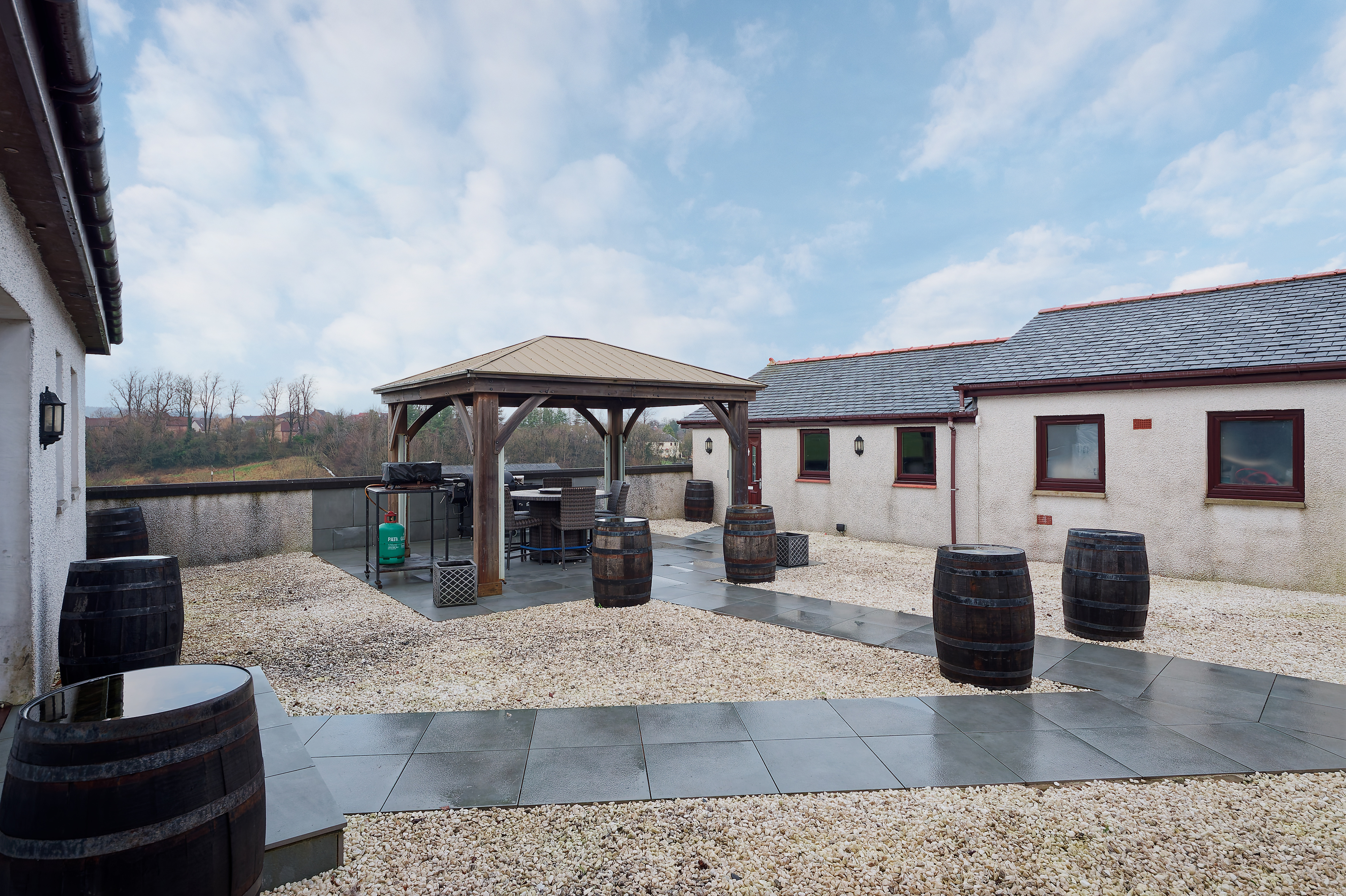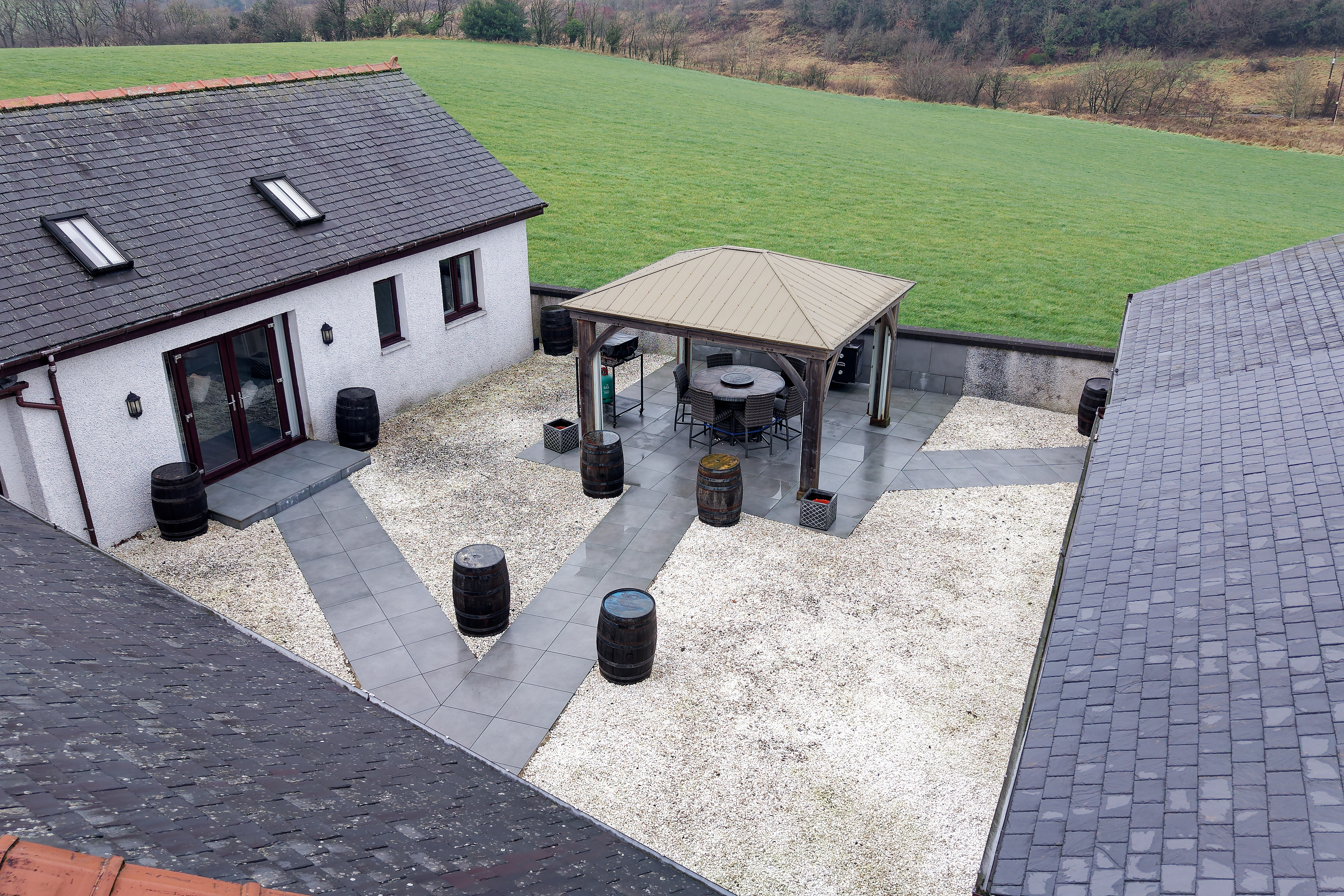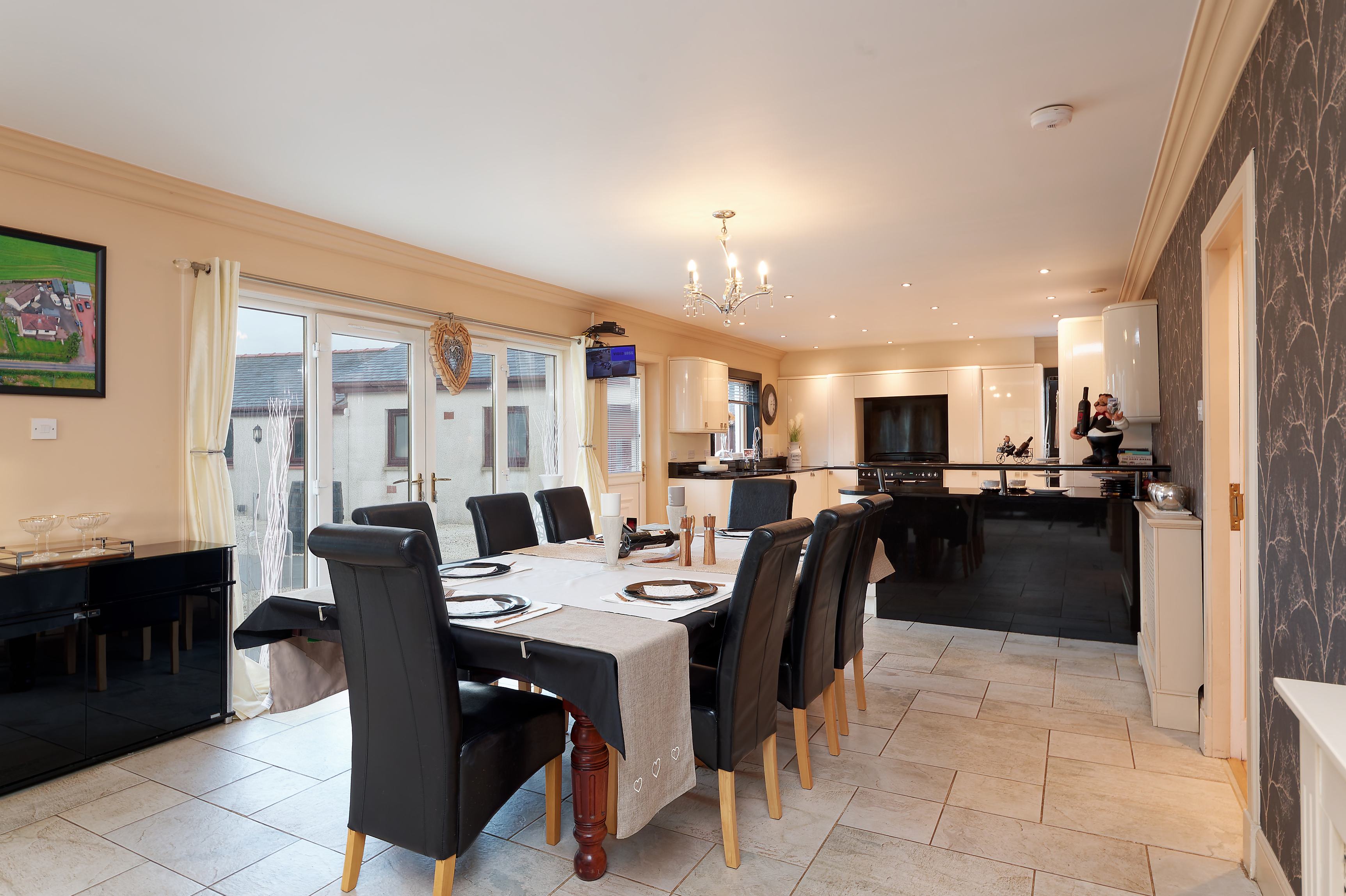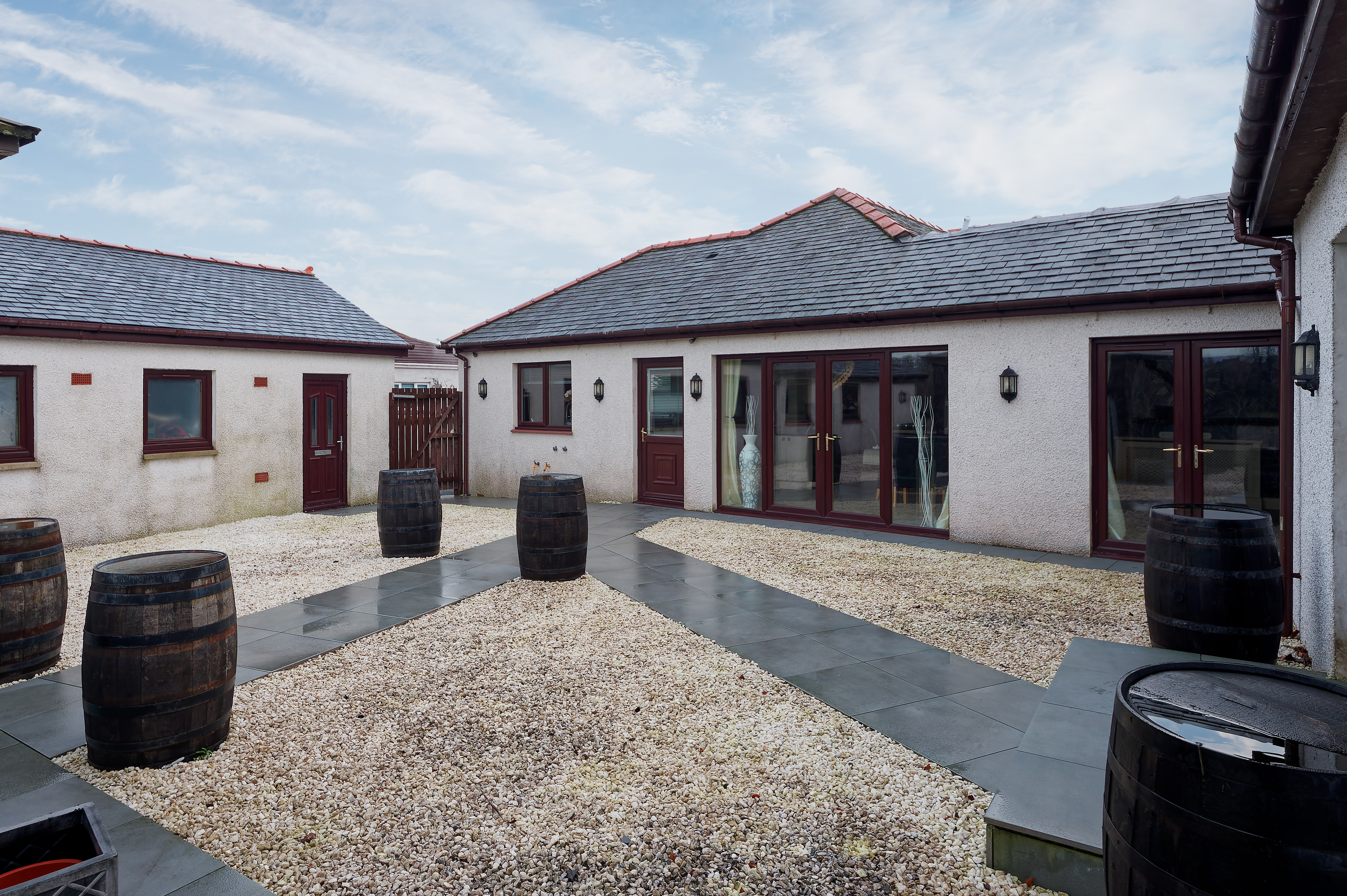The cottage has six main apartments with reception hallway, stunning 50’ living dining kitchen with two sets of French doors leading to the courtyard at the rear. The modern kitchen has ample wall and base units with contrasting Granite work surfaces with the entire area complemented with tiled flooring. To the rear of the lounge there is access to a two bedroom extension which has been incorporated into the main house but could easily be utilised for a family member depending on the needs of the purchasers. This portion of the cottage has an open plan living kitchen with feature vaulted ceiling, integrated appliances that include oven, hob, extractor hood and fridge freezer. There are two bedrooms, both with fitted wardrobes and a shower room and again a set of French doors to the courtyard providing separate access should you require.
