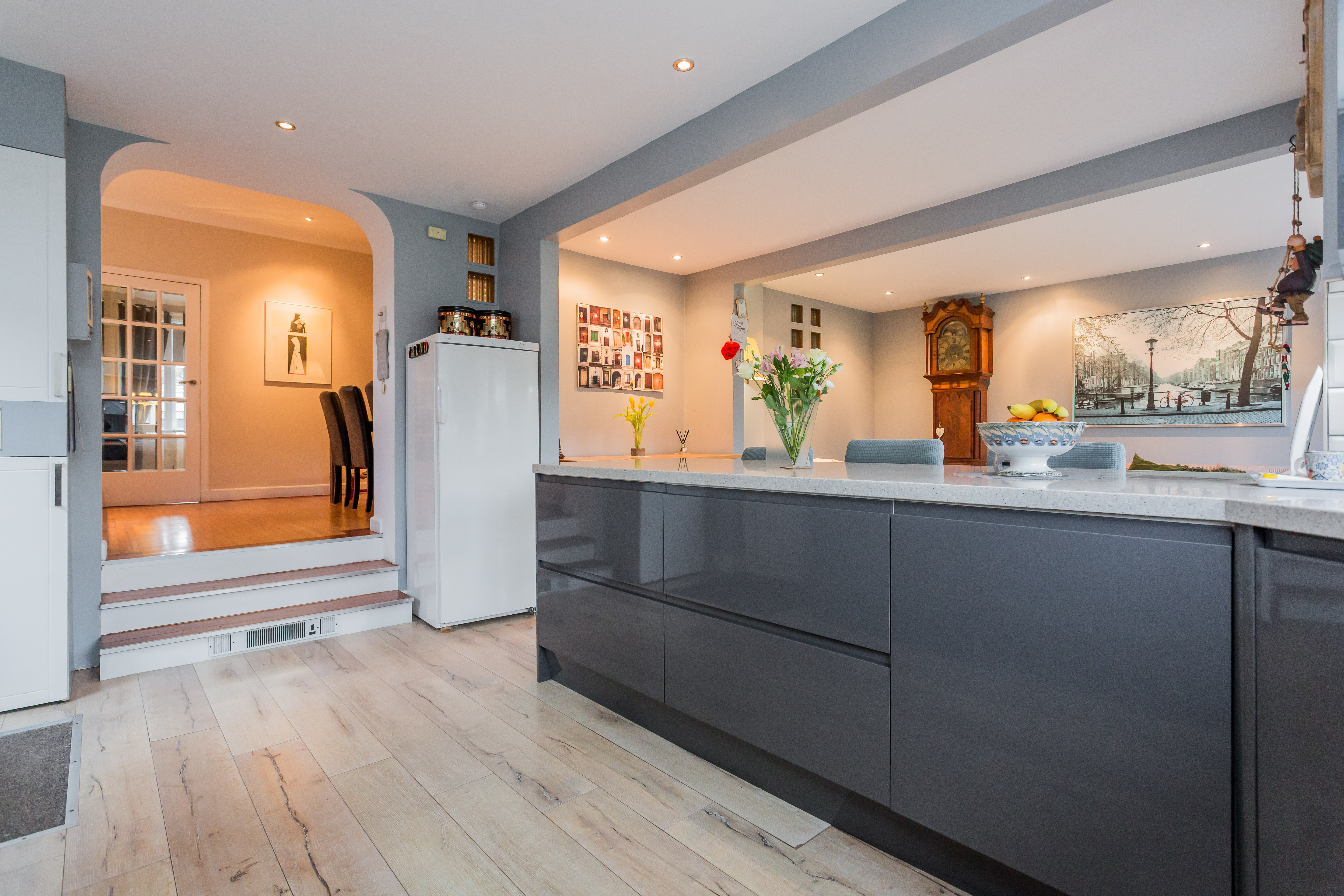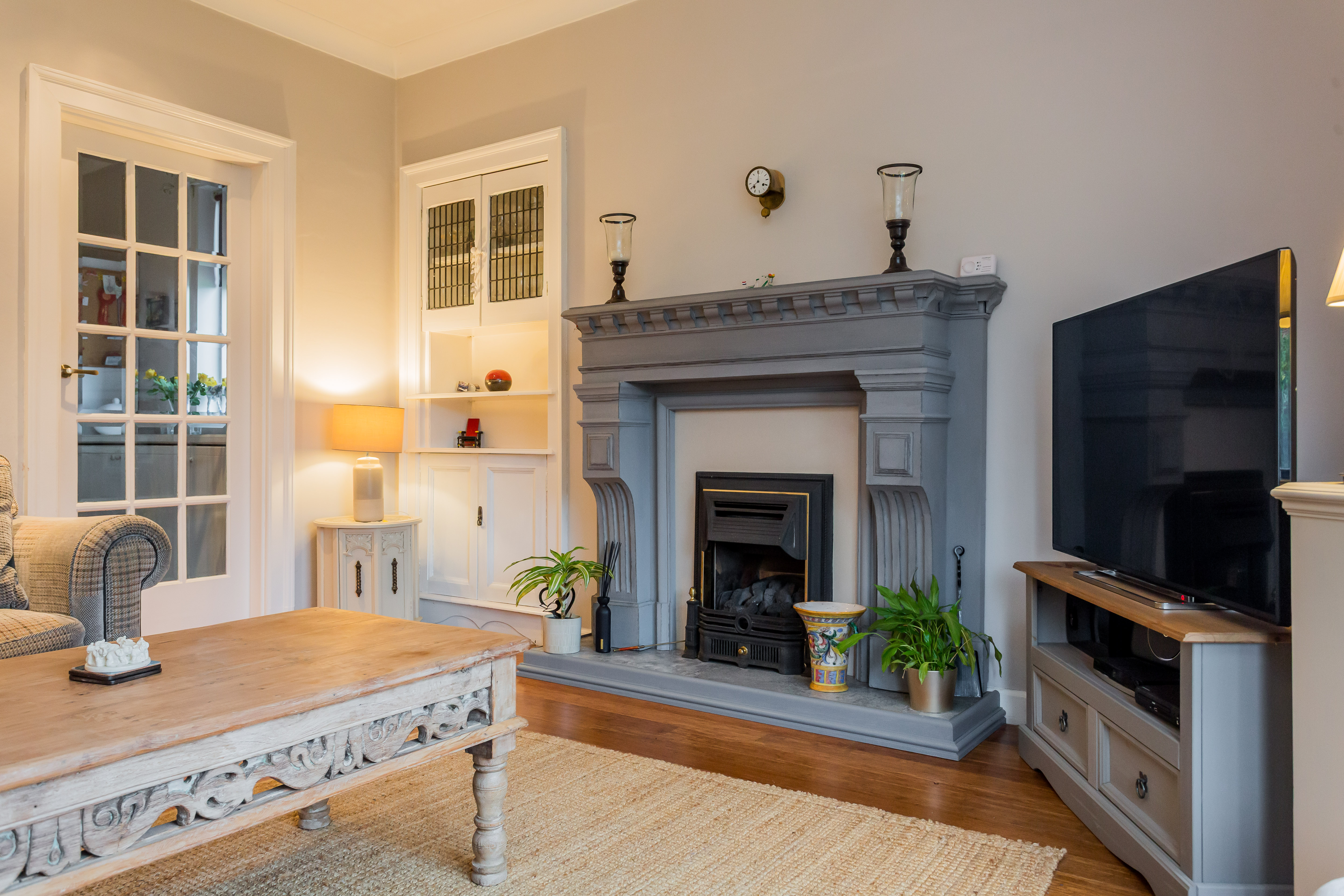 The entrance vestibule opens to the impressive reception hallway that has a WC off. The bay window lounge is to the front and has a feature fireplace. Also to the front is a double bedroom. The undoubted feature of this lovely home is the sitting breakfast kitchen that is on a slightly lower level at the rear with French doors that open to the rear garden. There is also a second double bedroom on the ground floor and the dining room which can be access from the lounge and hallway with feature glazing to the hallway and kitchen.
