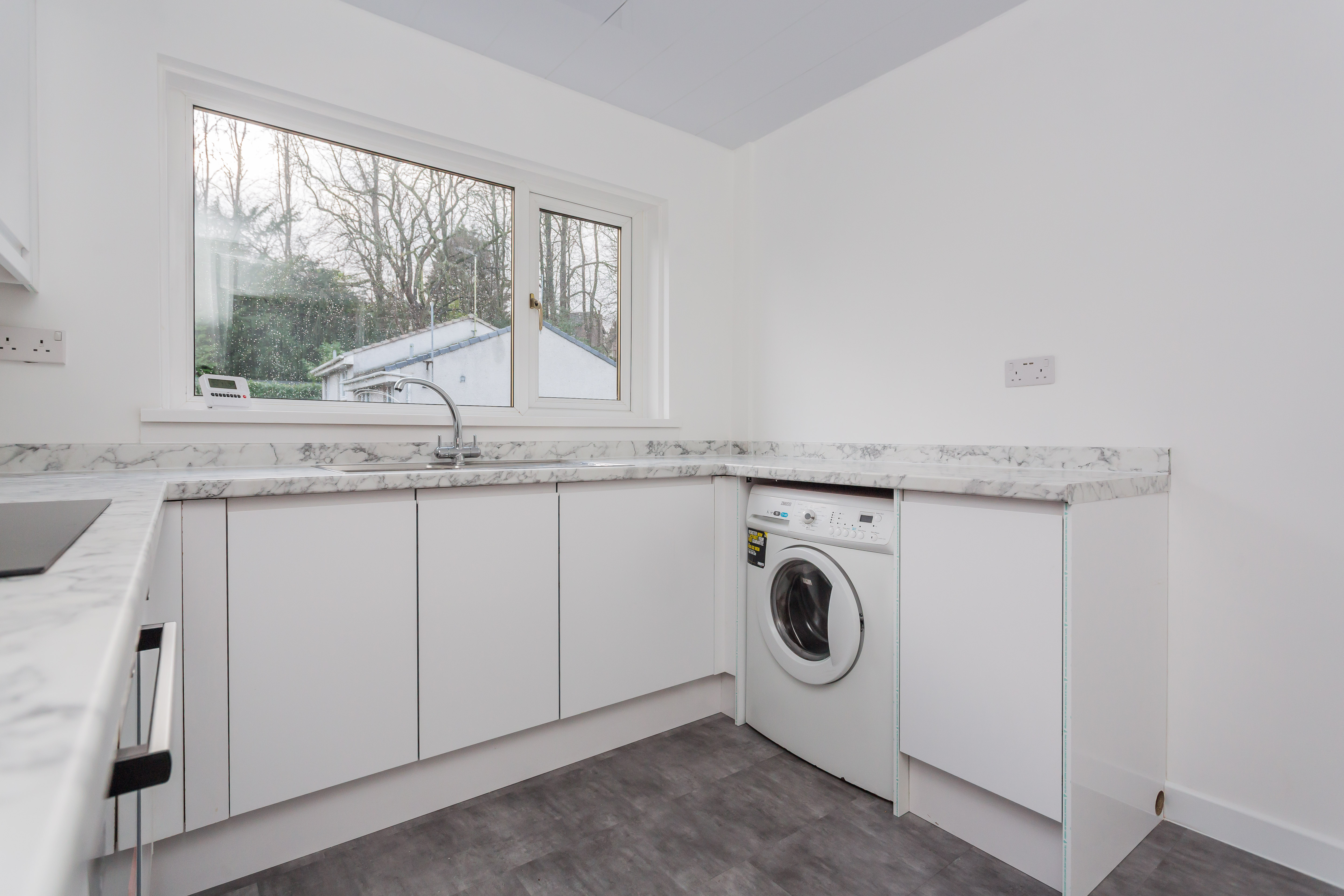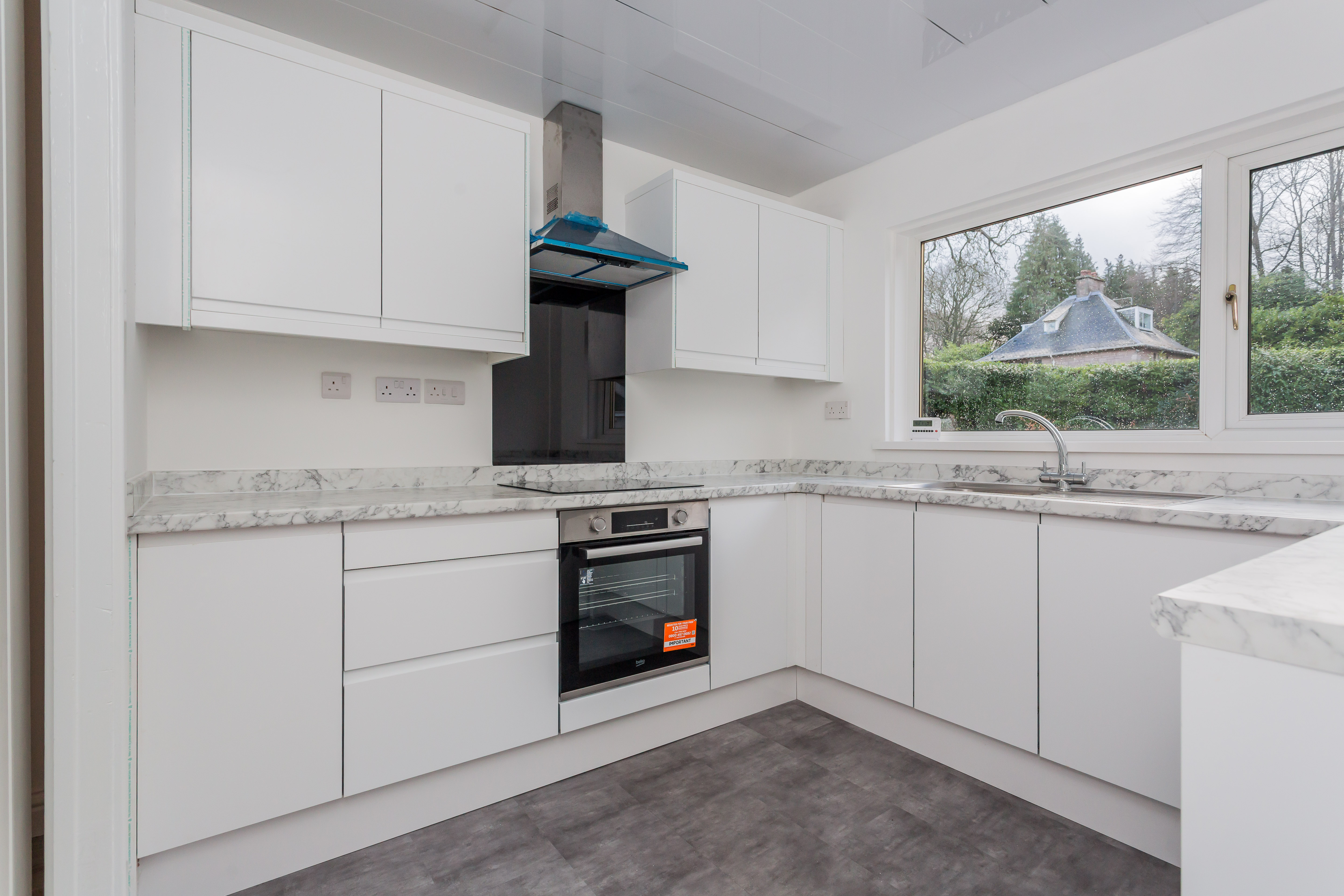 A bright and welcoming reception hallway leads to the main living accommodation. The spacious lounge enjoys dual-aspect windows, flooding the room with natural light, and offers ample space for both relaxing and dining. The brand-new kitchen is sleek and contemporary, fitted with stylish units and excellent storage, alongside generous worktop space and room for appliances—ideal for busy family life.
