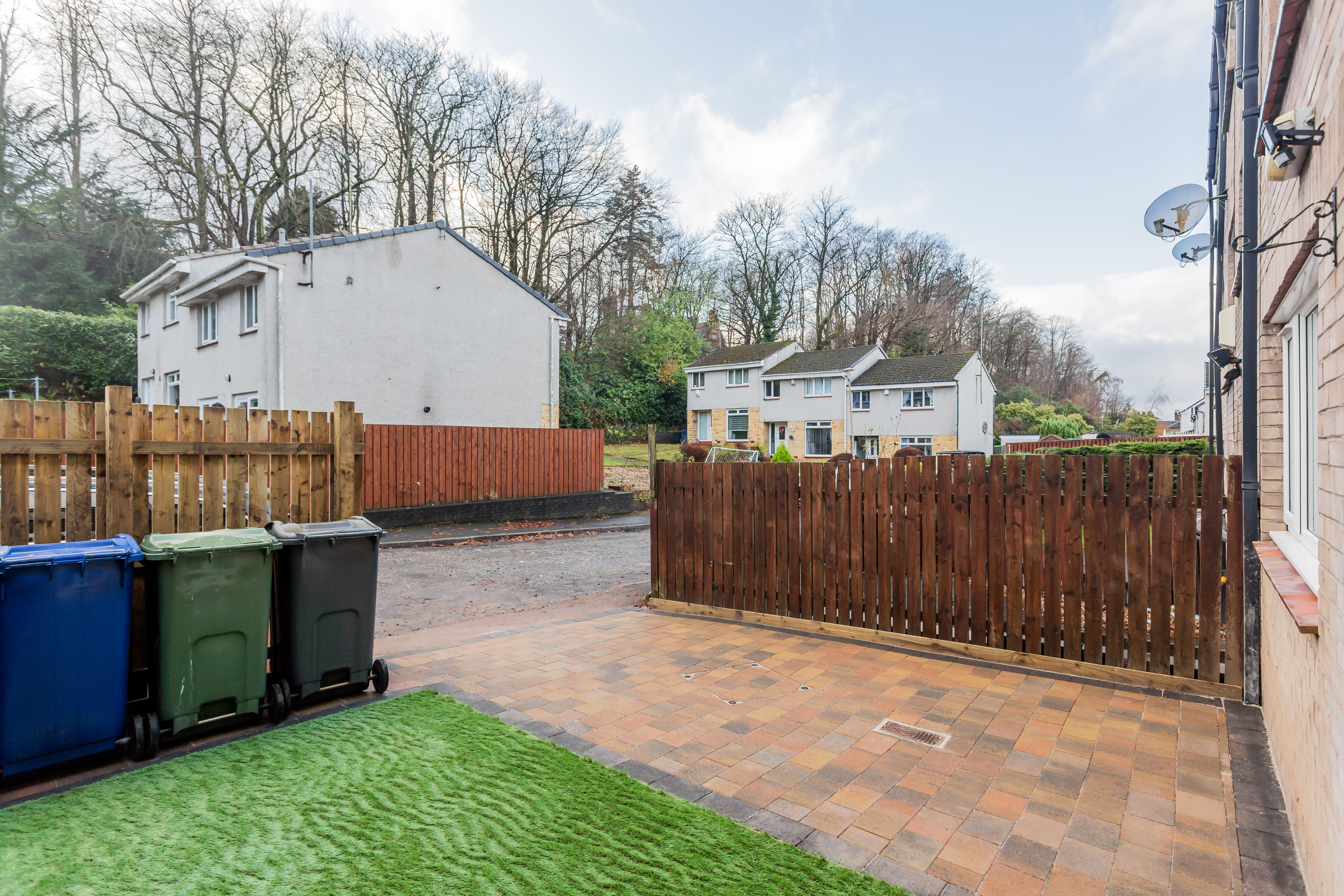 The rear garden has been thoughtfully landscaped to create a low-maintenance yet attractive outdoor area. The monoblock driveway provides private parking to the rear, while the artificial grass section offers a perfect spot for children to play or for adults to sit out and enjoy the sunshine. With direct access from the house via French doors, the garden works brilliantly for family living and entertaining alike.