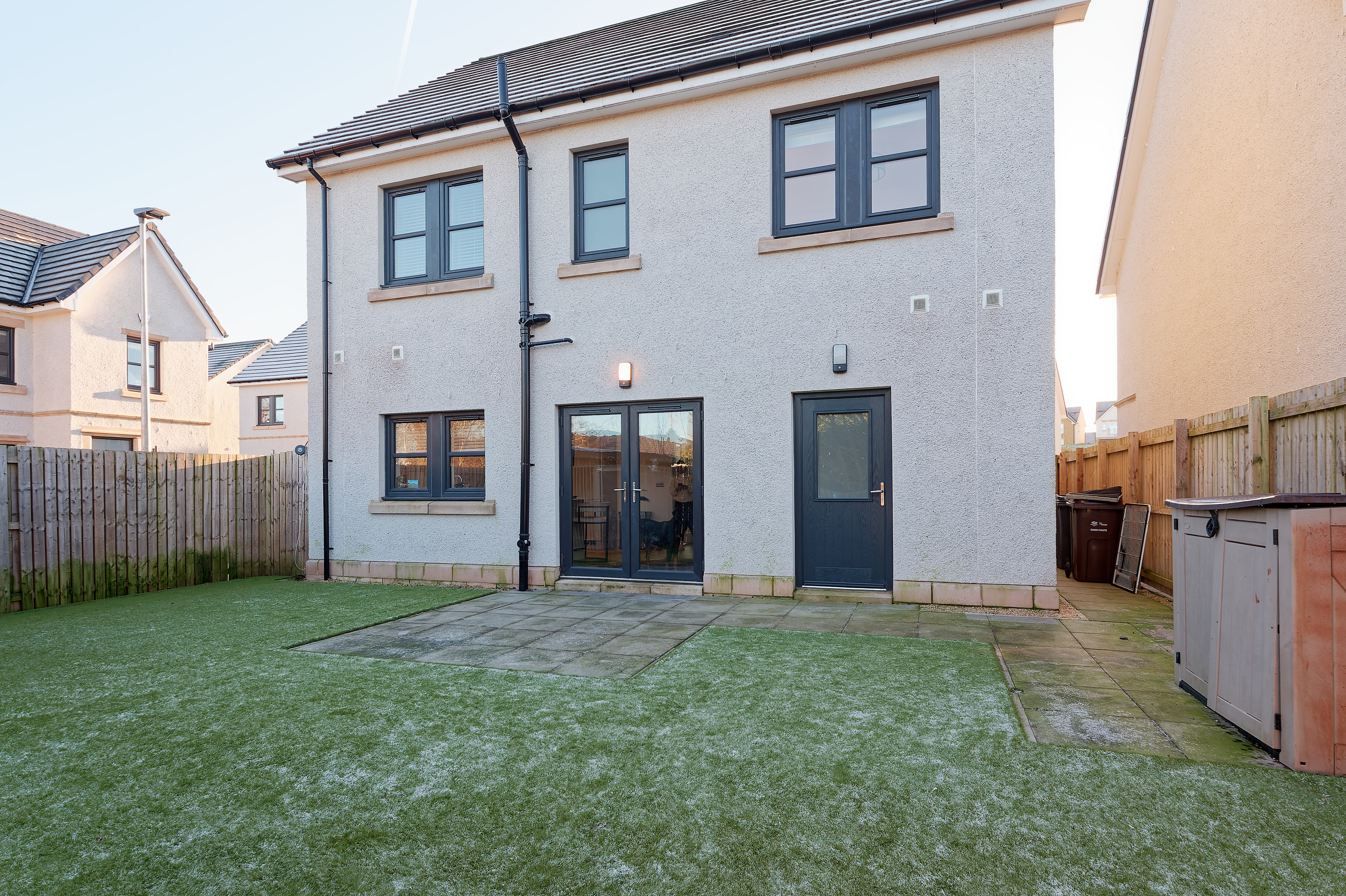 Externally the gardens have been landscaped with low maintenance artificial grass bordered by timber fencing and enjoying open aspects. A monobloc driveway provides off street parking and access to the single integrated garage.