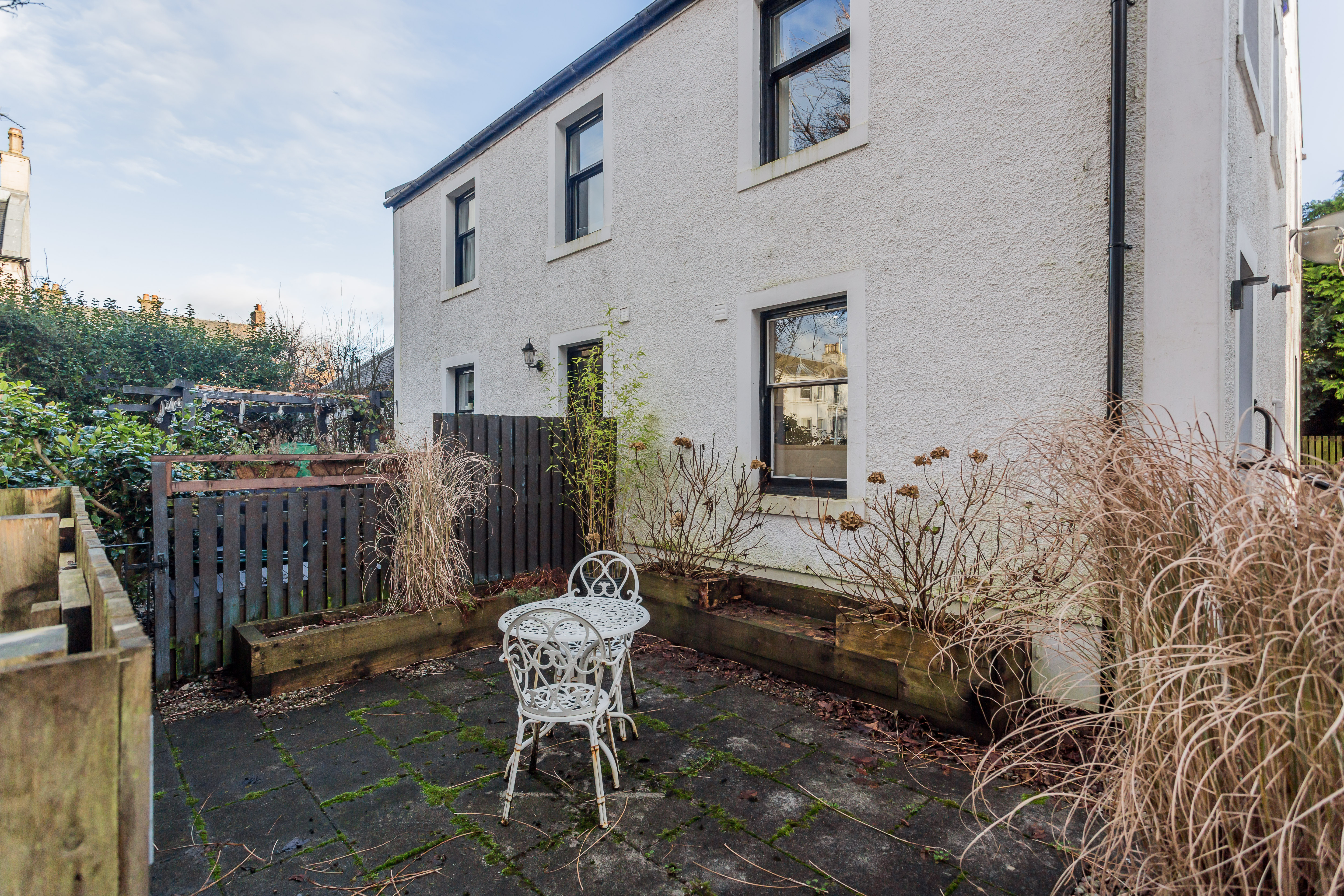 To the front of the property there is stone chipped front garden and patio with off street parking in a courtyard setting. The rear garden also has a patio area with planters and bordered by an original stone wall.