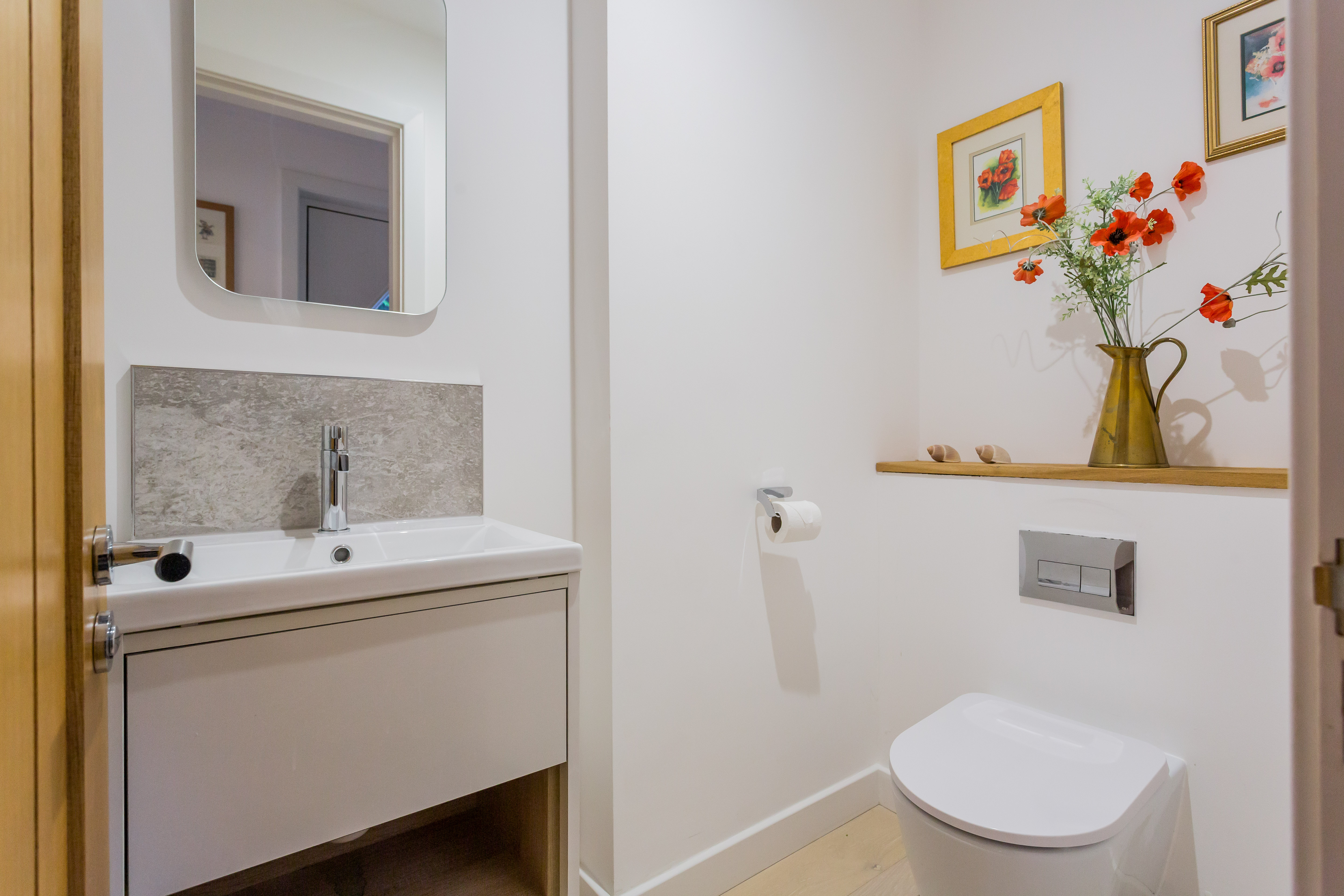 A carpeted stairwell leads to the first floor where there are two double bedrooms and a luxury shower room with walk-in shower , WC and wash hand basin and the added benefit of underfloor heating. The upper hallway has ladder access to the attic. Each of the bedrooms have windows on two elevations bringing fantastic natural light to the entire property.