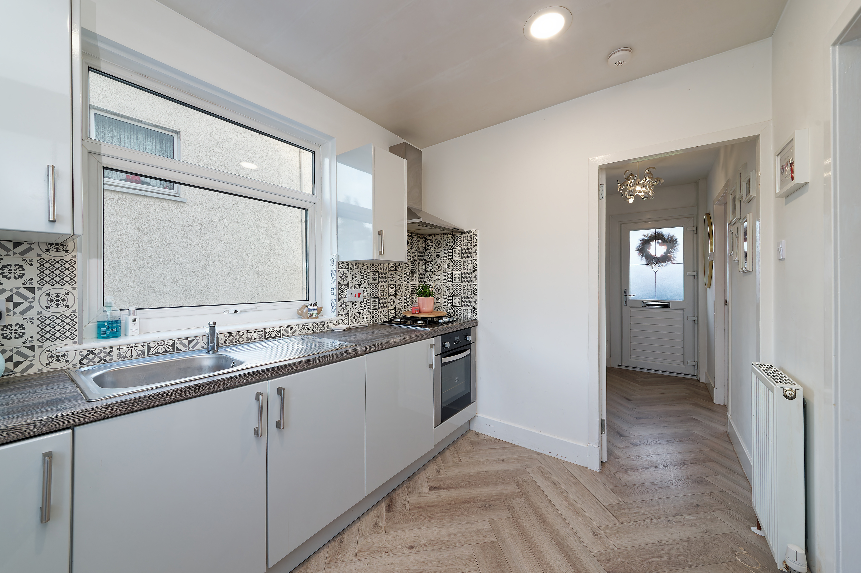 Modernised & upgraded the property is set in a well established address, the accommodation comprises of a covered entrance to the reception hallway, 21’ dining size lounge with box bay window to the front and a contemporary kitchen with integrated oven, hob and extractor hood. There is a Upvc door leading to the deck and garden.