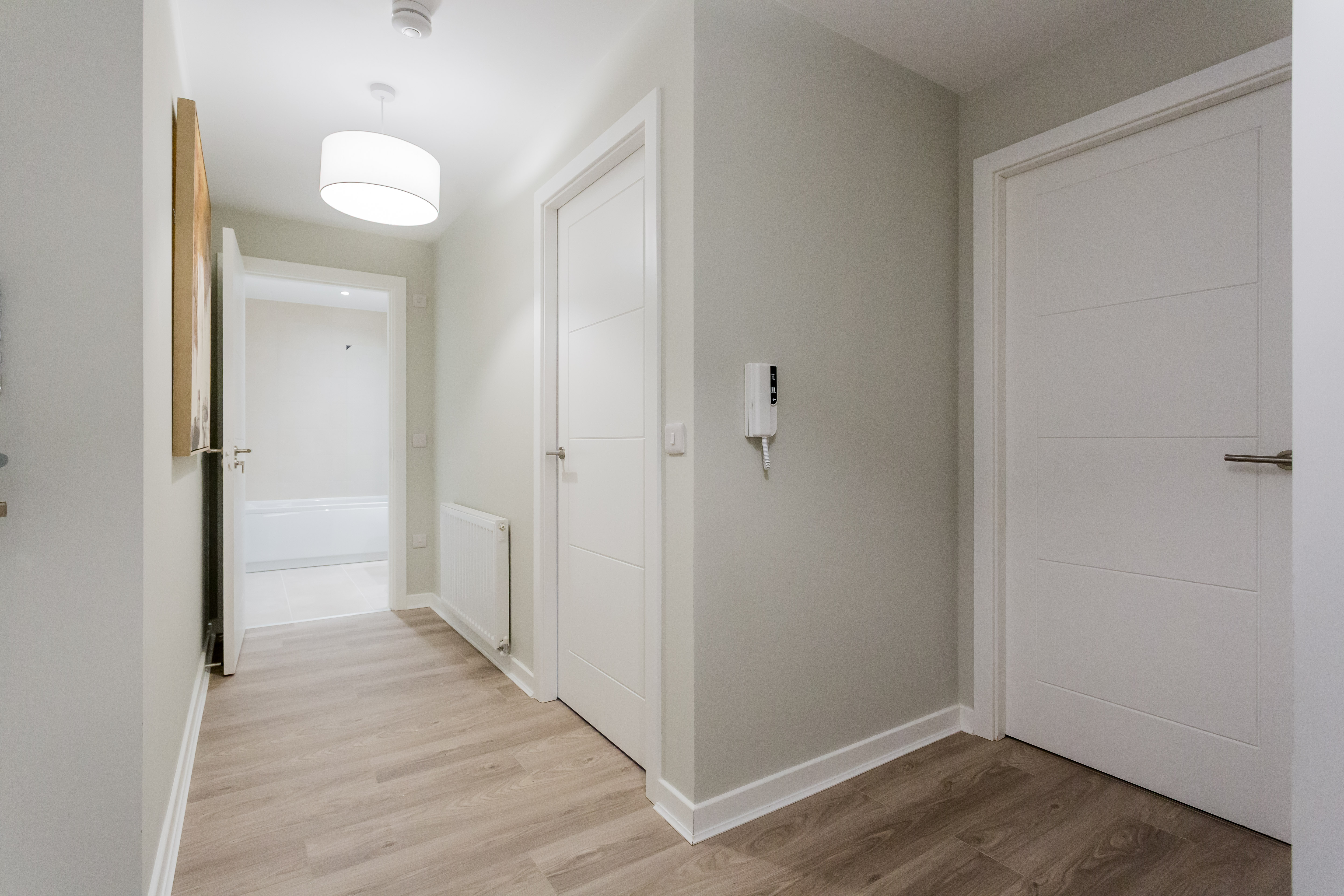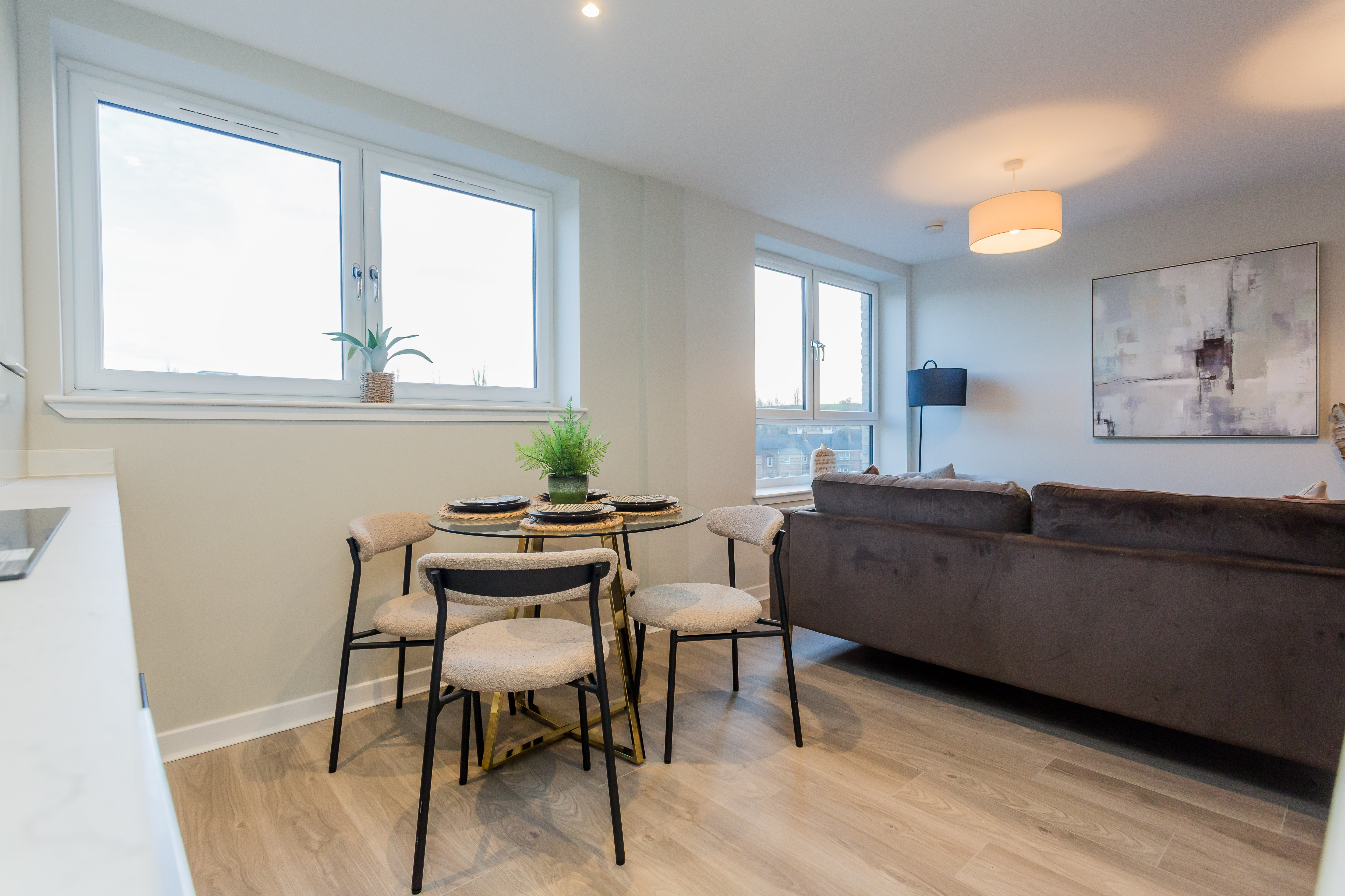 Set in a prime riverside spot, The Millhouse pairs heritage with modern flair. From here, views stretch across the gentle flow of the White Cart Water, towards Paisley’s grand Victorian Town Hall and historic Abbey. This particular apartment enjoys open outlooks towards The Abbey Mill, where the town’s industrial past meets its design-led future.