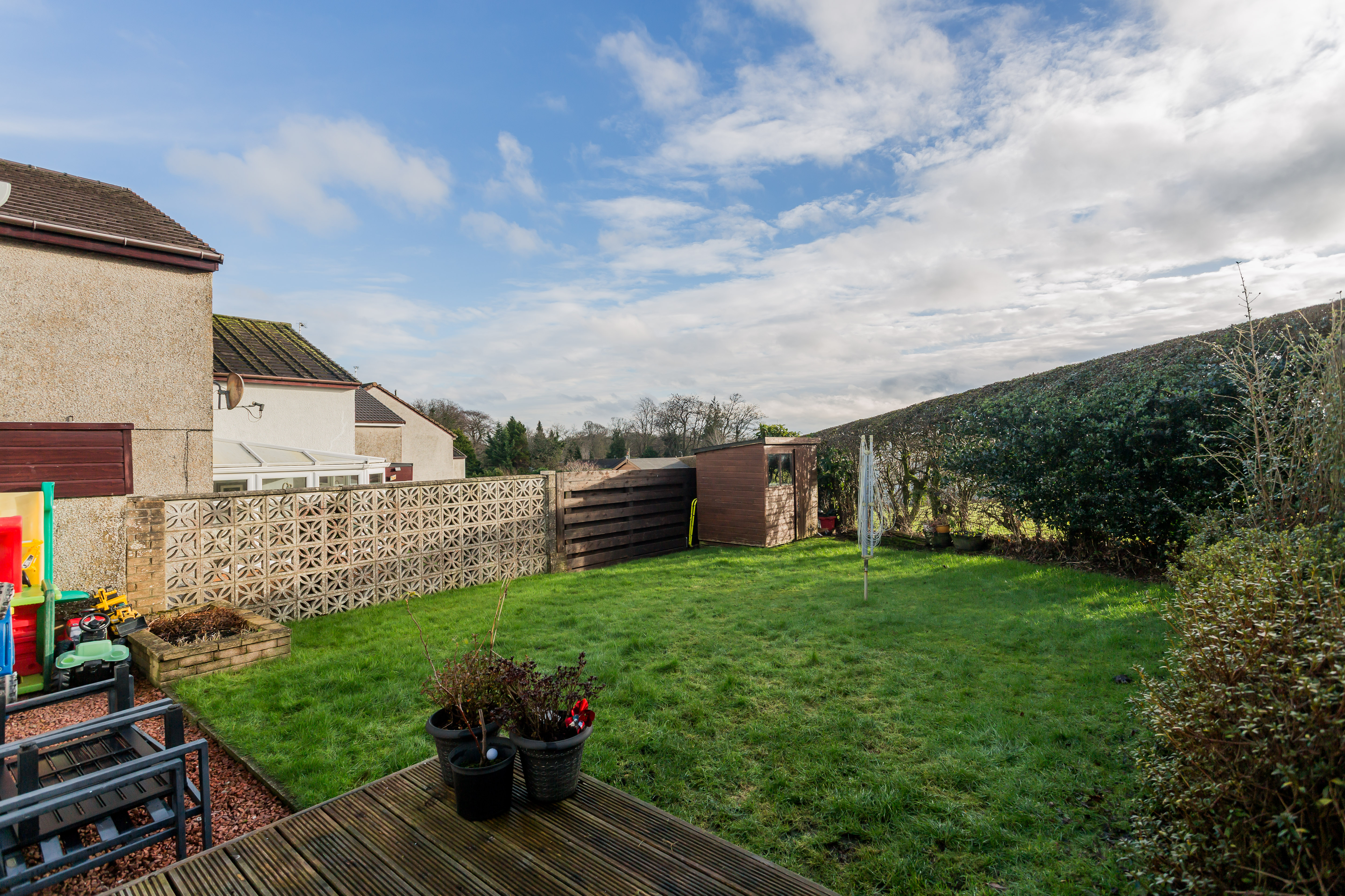 Externally to the rear the fully enclosed rear garden is mainly laid to lawn with timber deck all bordered by timber fencing and a mature hedge.
