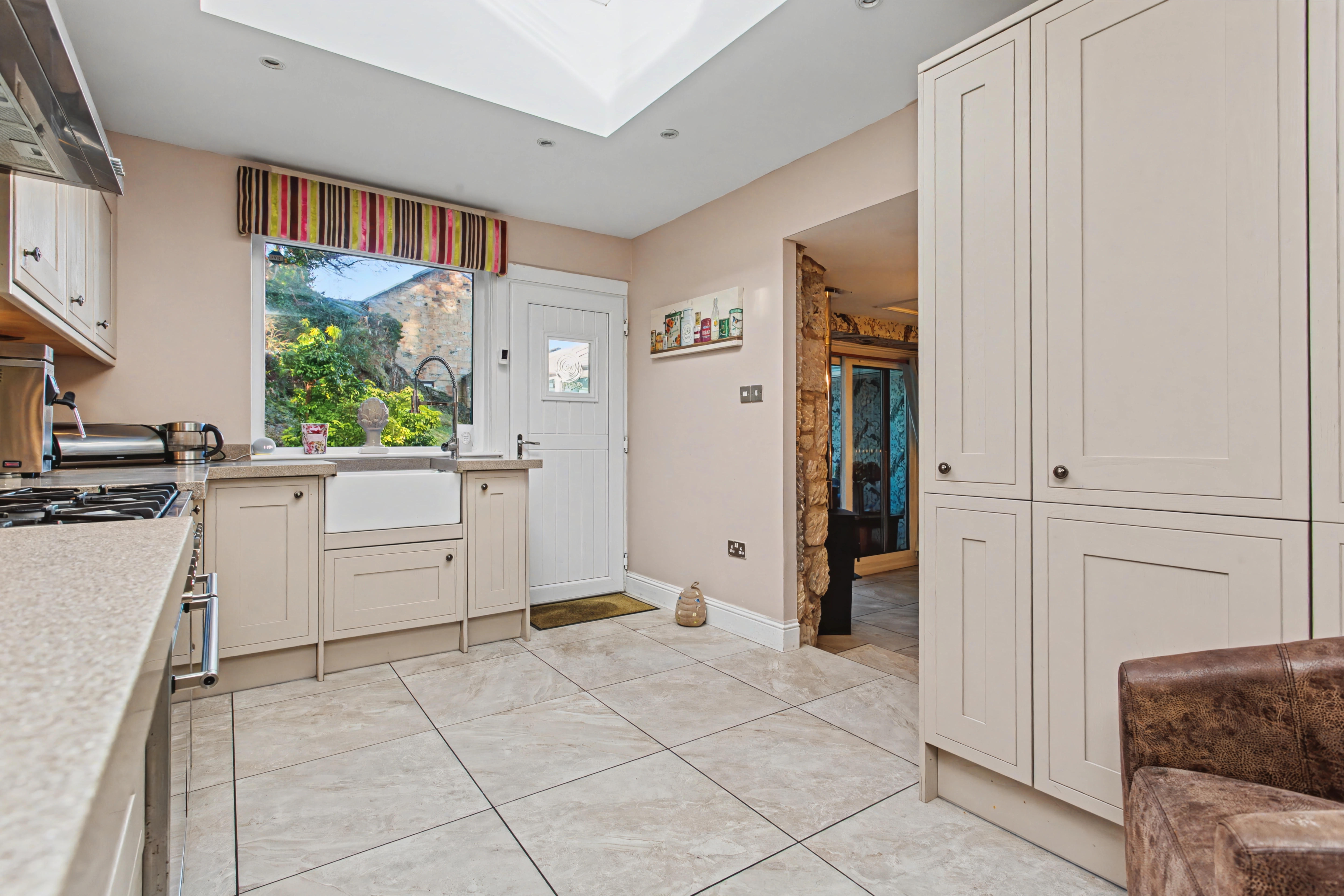 The dining room is off the kitchen as well as the lounge allowing a feeling of free-flowing space which extends into the conservatory without compromising the period of the property which is enhanced with the exposed stonework in both the dining room and the conservatory.