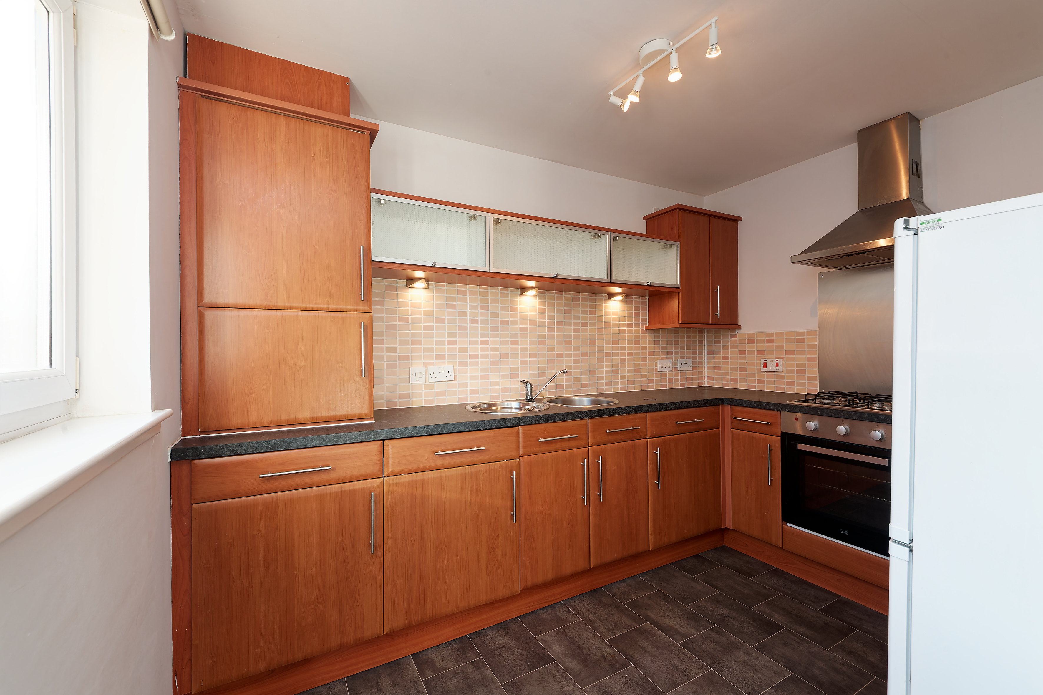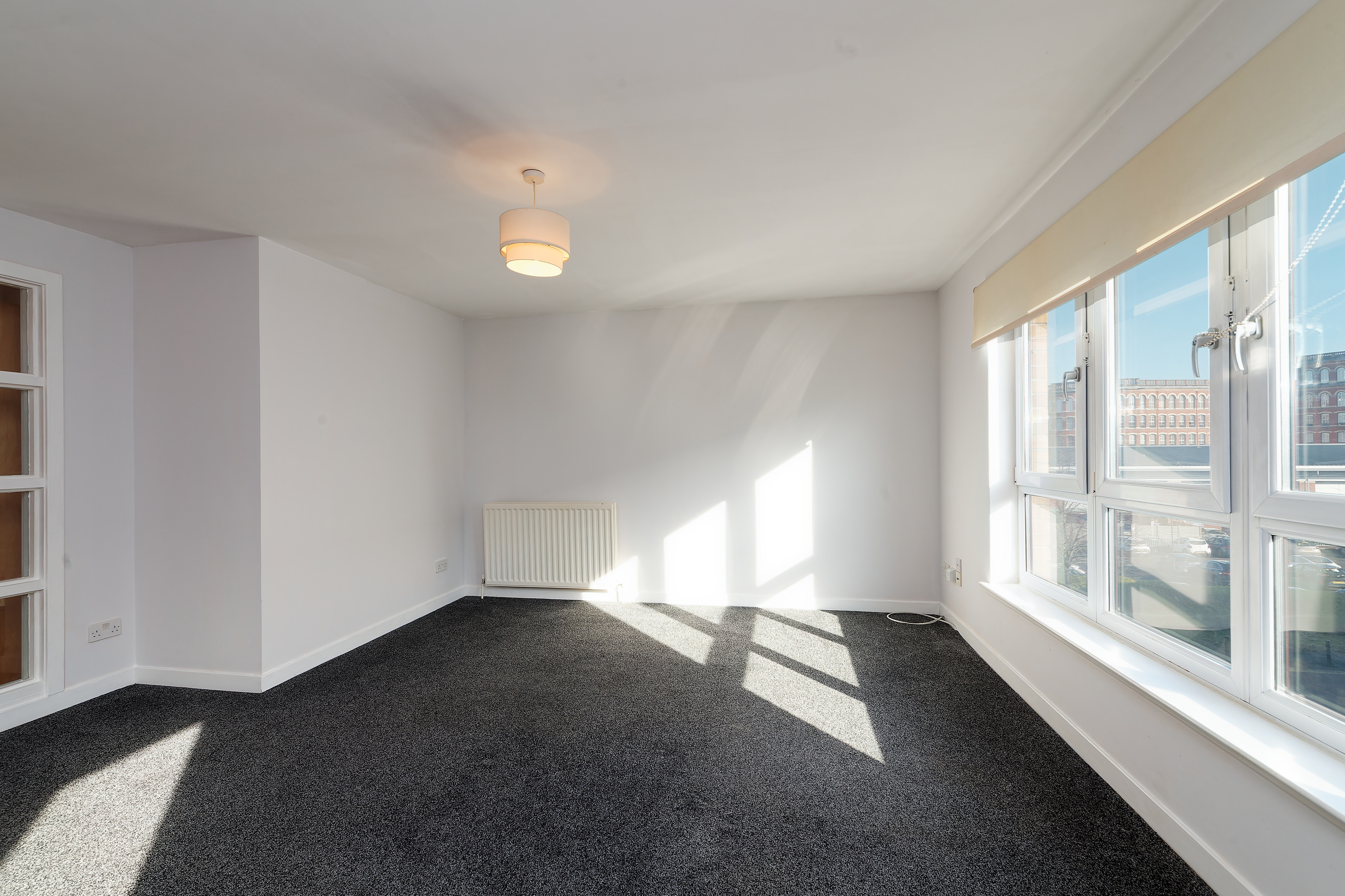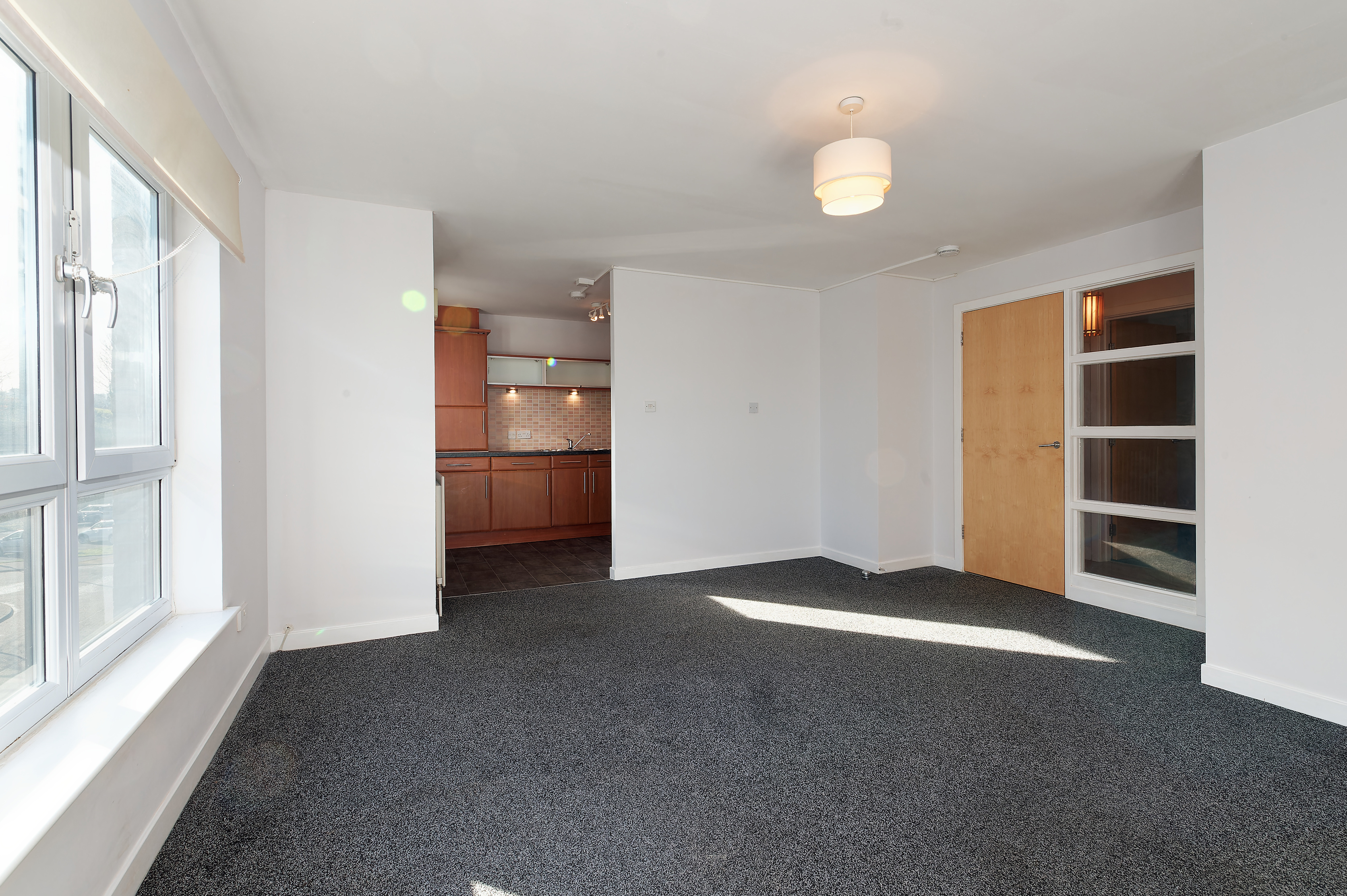 The accommodation is bright and well proportioned throughout. An entrance hallway provides a useful storage cupboard and access to all apartments. The front-facing lounge is filled with natural light from large windows and offers generous space for both lounge furniture and a dining table, making it ideal for relaxing or entertaining. The semi-open-plan kitchen is fitted with a range of storage units and includes an oven, hob, and space for a fridge freezer and washing machine.