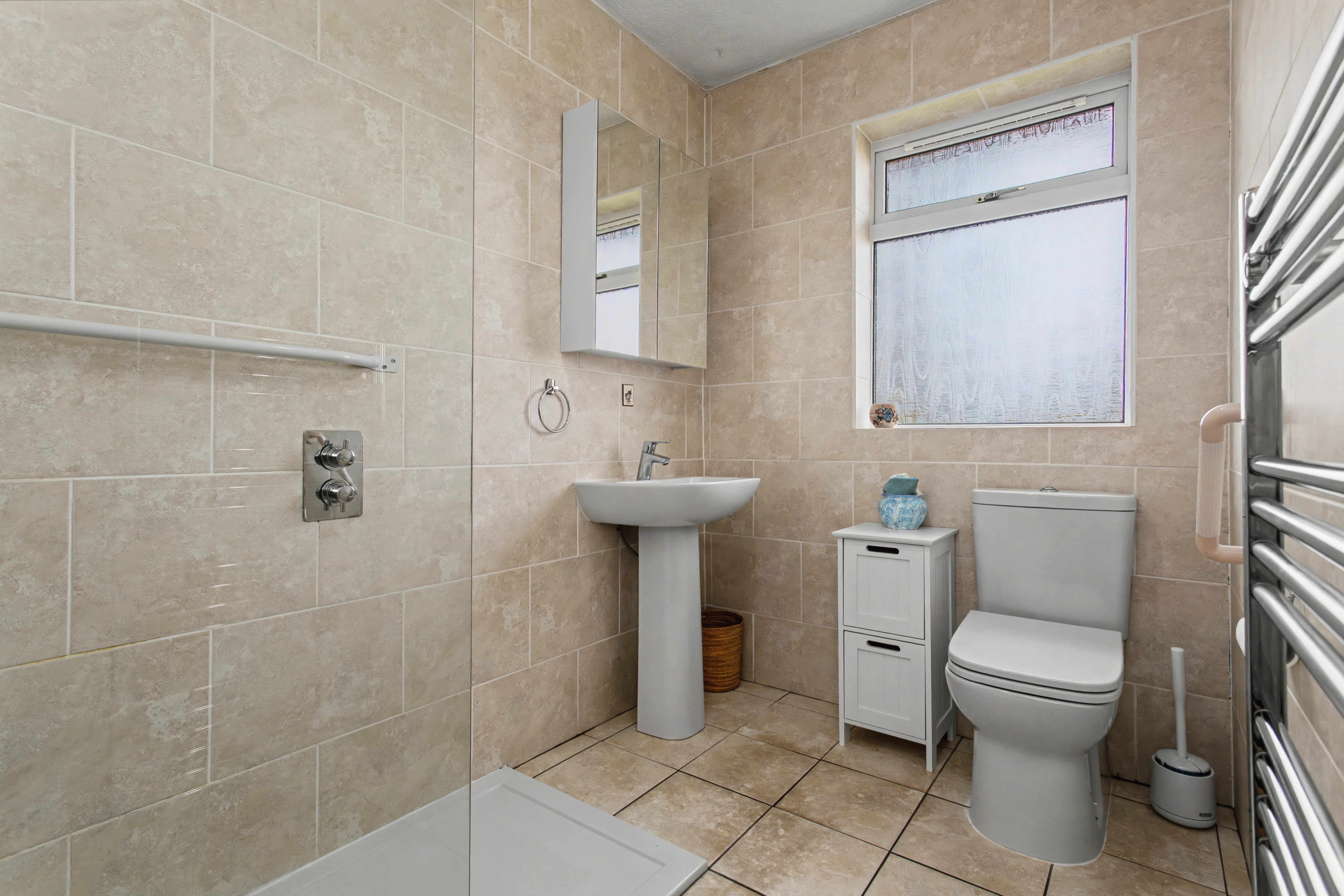 There are three bedrooms and a fully tiled shower room with walk in enclosure and plumbed in shower. The level garden to the rear is extremely private and is mainly laid to lawn with a mature hedge and timber fence bordering.