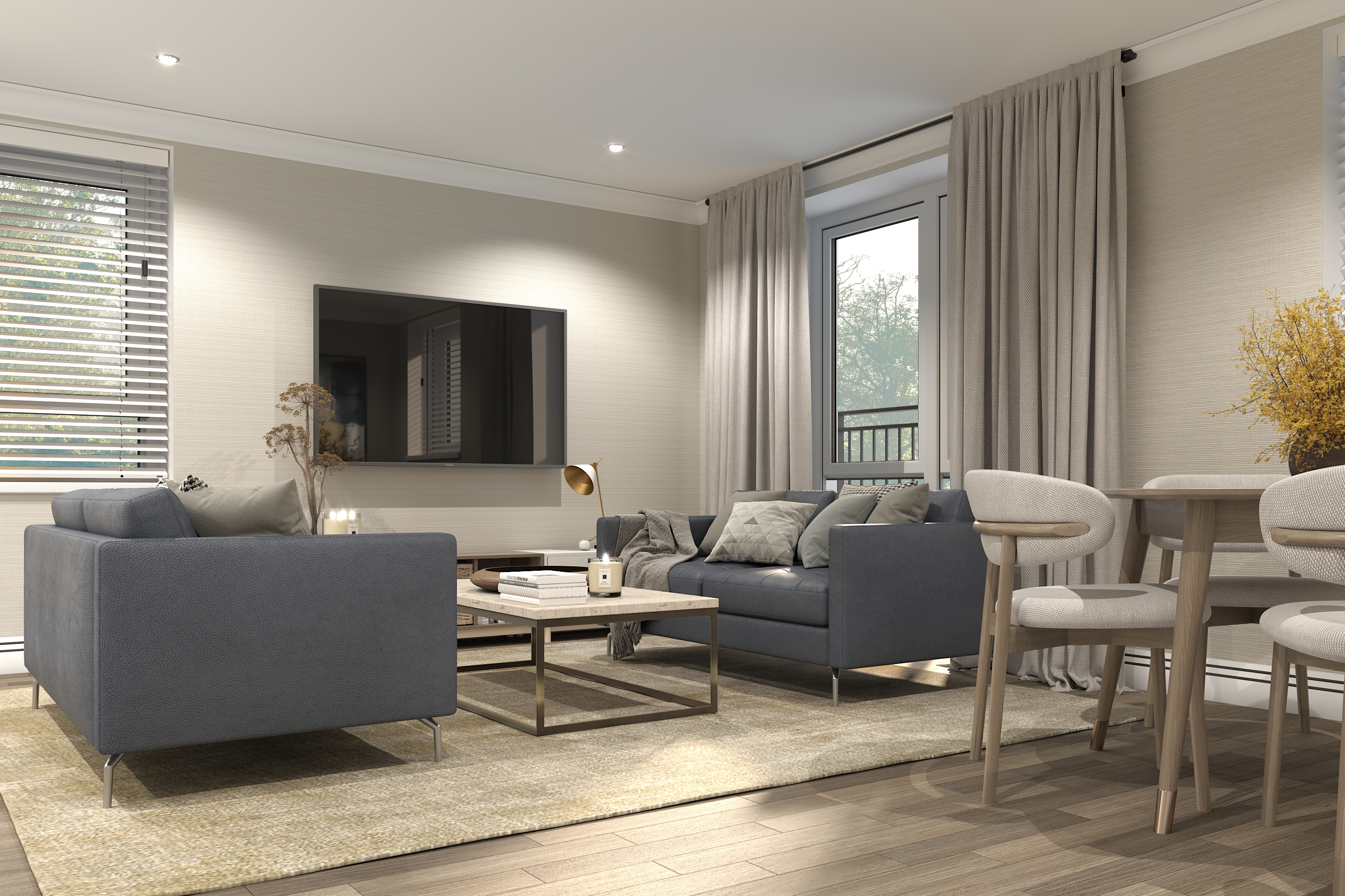 The Jura is a generous two-bedroom apartment with an open plan stylish fitted kitchen and dual aspect living room. The elegant master bedroom includes a modern ensuite and both double-sized bedrooms include fitted wardrobes. The main bathroom features deluxe sanitaryware and attractive ceramic tiling. The Jura is complete with practical storage.