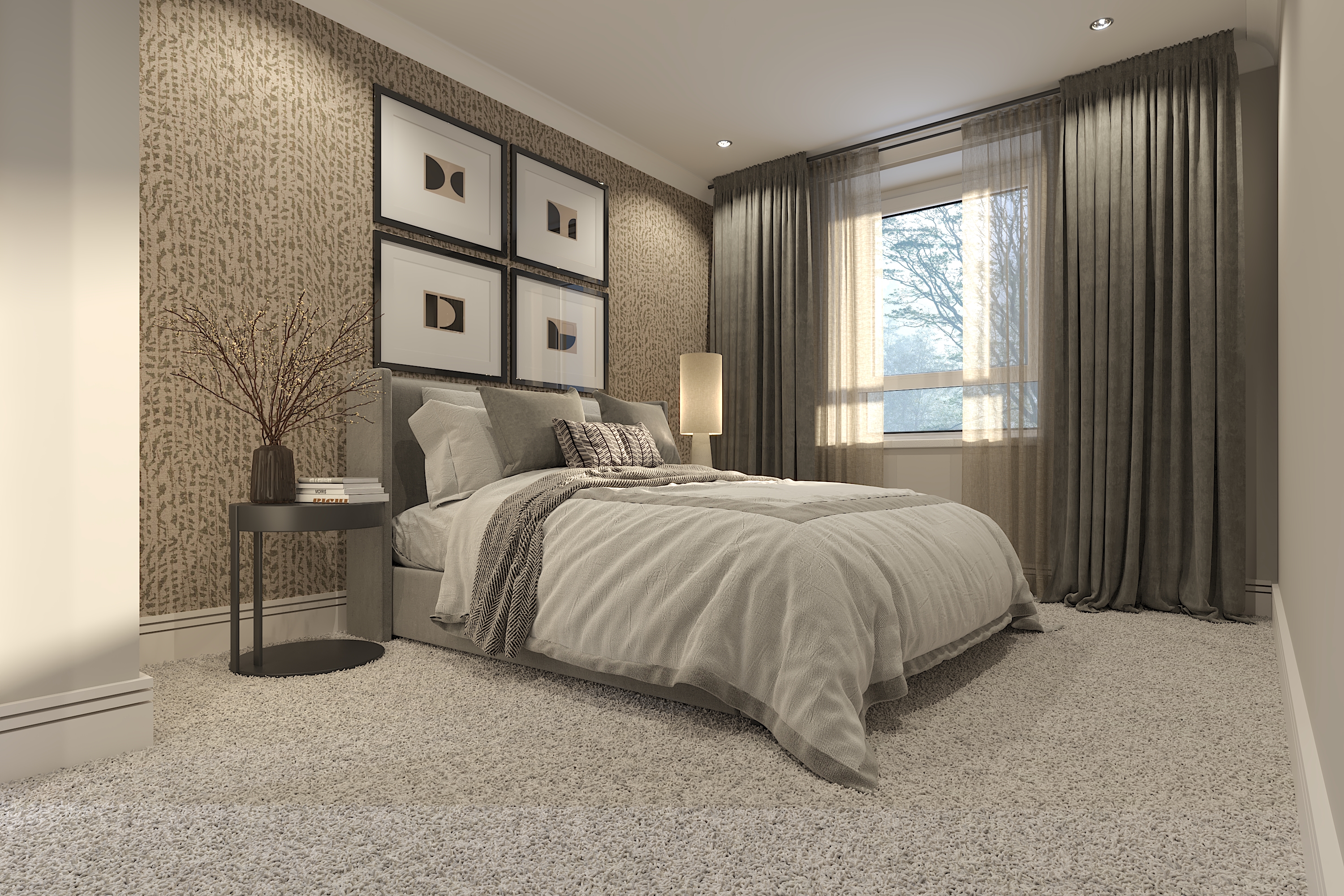 The Arran is a stylish and spacious one-bedroom contemporary apartment. Designed to be low maintenance without compromising on style, it features a welcoming hallway, an open plan living area and fully fitted kitchen, with space for a dining table if desired. A feature window with Juliette balcony provides a pleasant outlook and natural light. The double bedroom offers ideal space to relax and has a large, fitted wardrobe. The bathroom features stylish ceramic tiling and sanitaryware. Handy storage space completes the Arran.