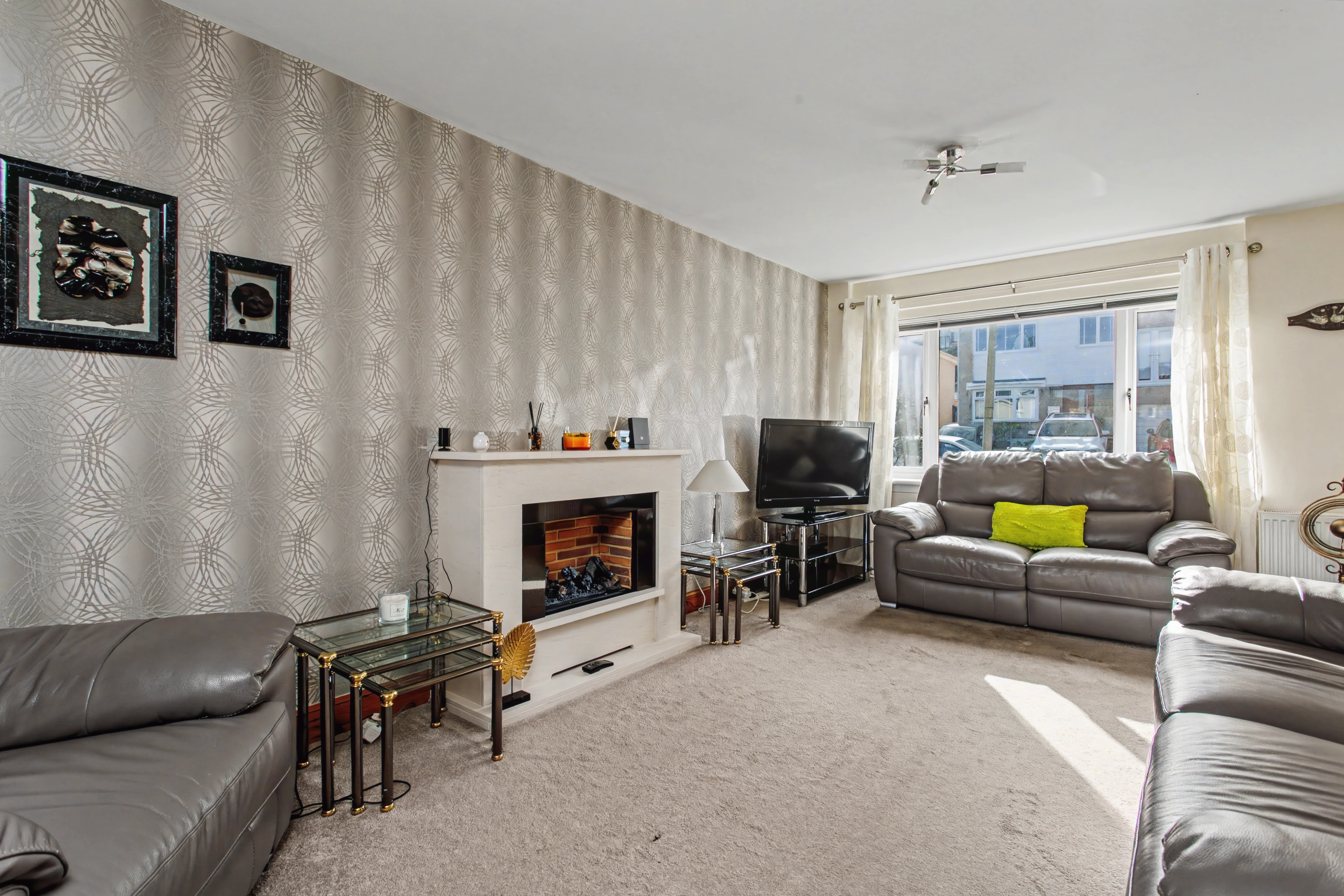 Step inside and the home immediately feels welcoming and light. The lounge enjoys a large front-facing window, allowing natural light to pour in and create a warm, relaxed space to unwind. It flows seamlessly into the generous dining area, where patio doors open directly onto the garden – perfect for summer barbecues, weekend brunches, or simply letting the outside in.