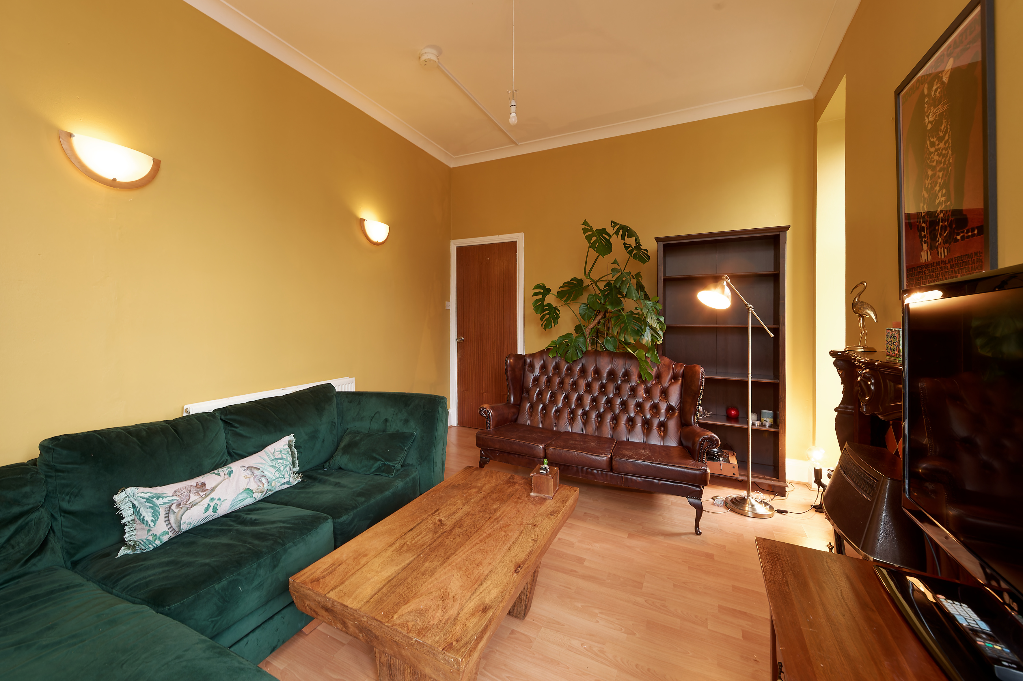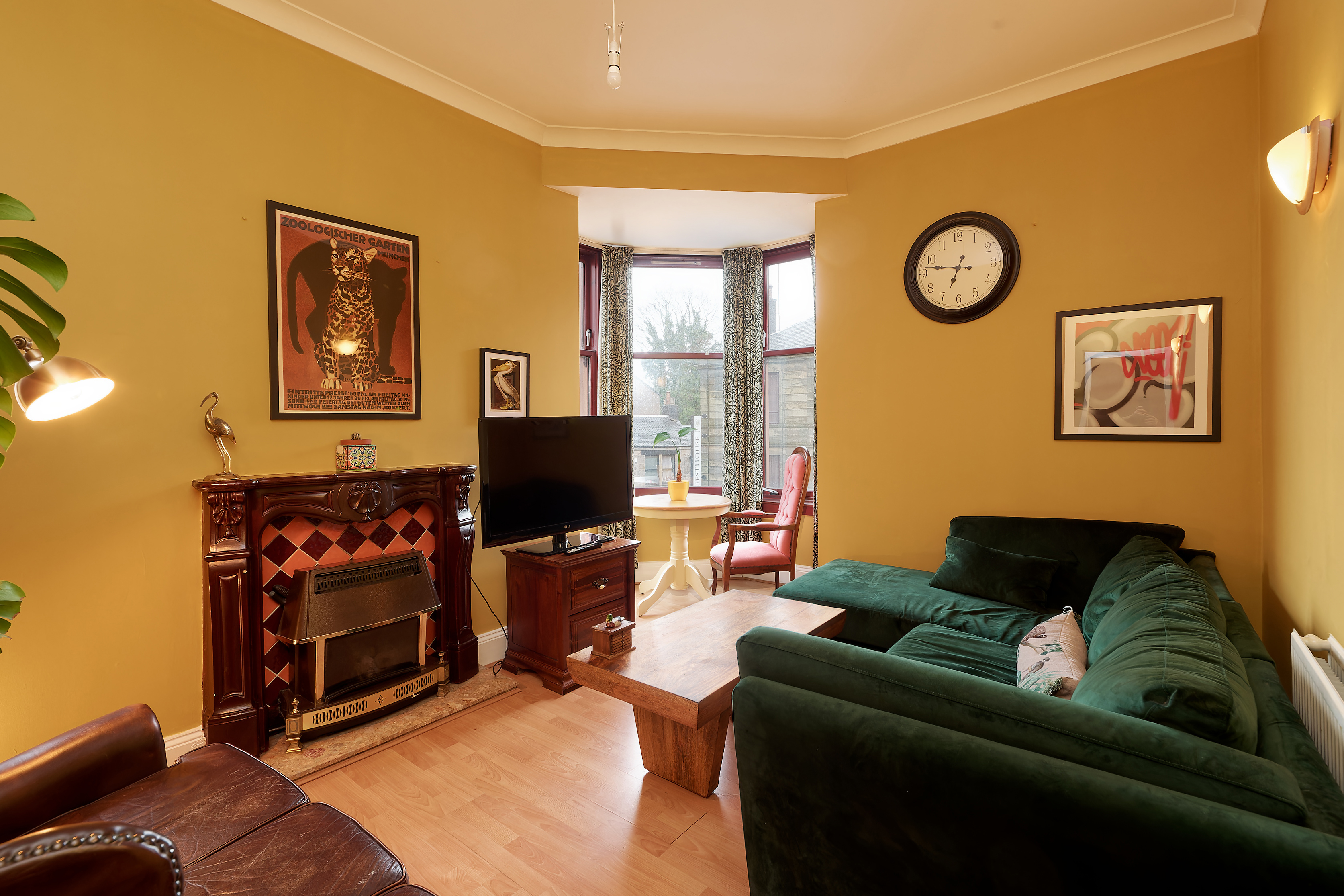 The accommodation begins with a welcoming L-shaped reception hallway, complete with two excellent storage cupboards and access to all main apartments. The impressive lounge occupies a prominent corner position and features a charming bay window with open outlooks over Walker Street and Wellmeadow Street, creating a bright and inviting living space.