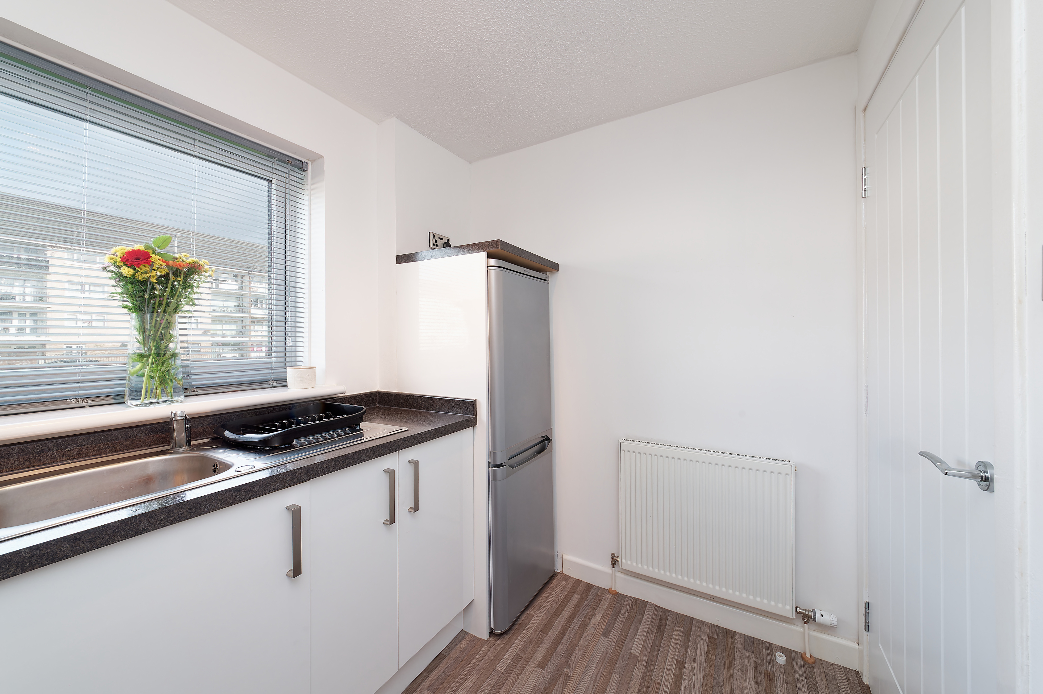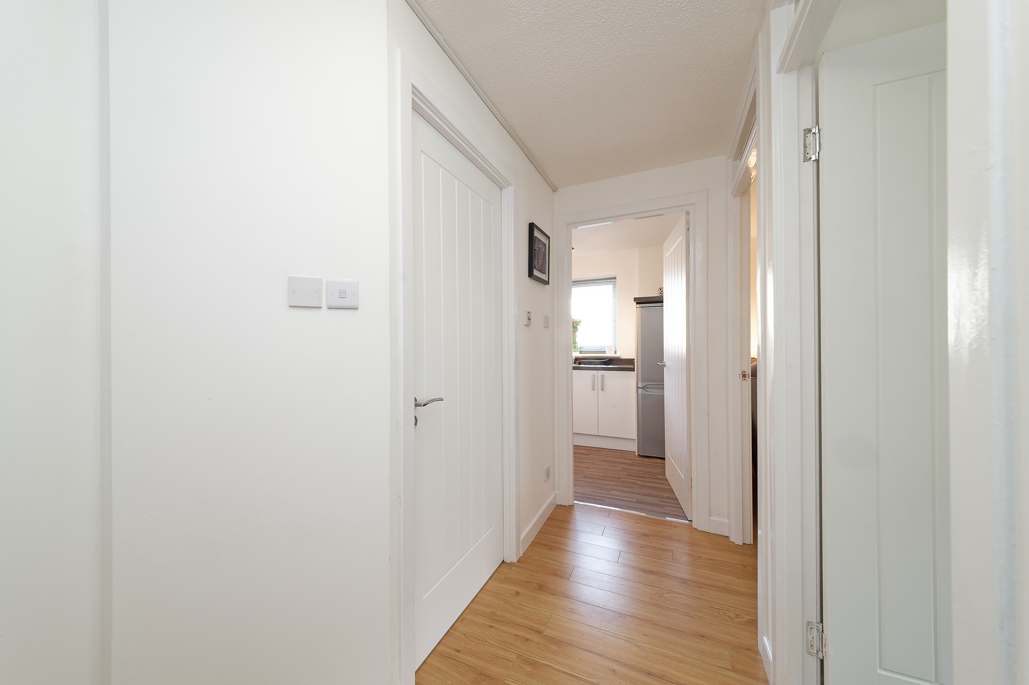Access is via a secure door entry system, leading into a welcoming hallway with newly installed internal doors enhancing the overall finish. The bright and spacious lounge enjoys a desirable corner position, with a charming box bay window providing the ideal space for a dining area.