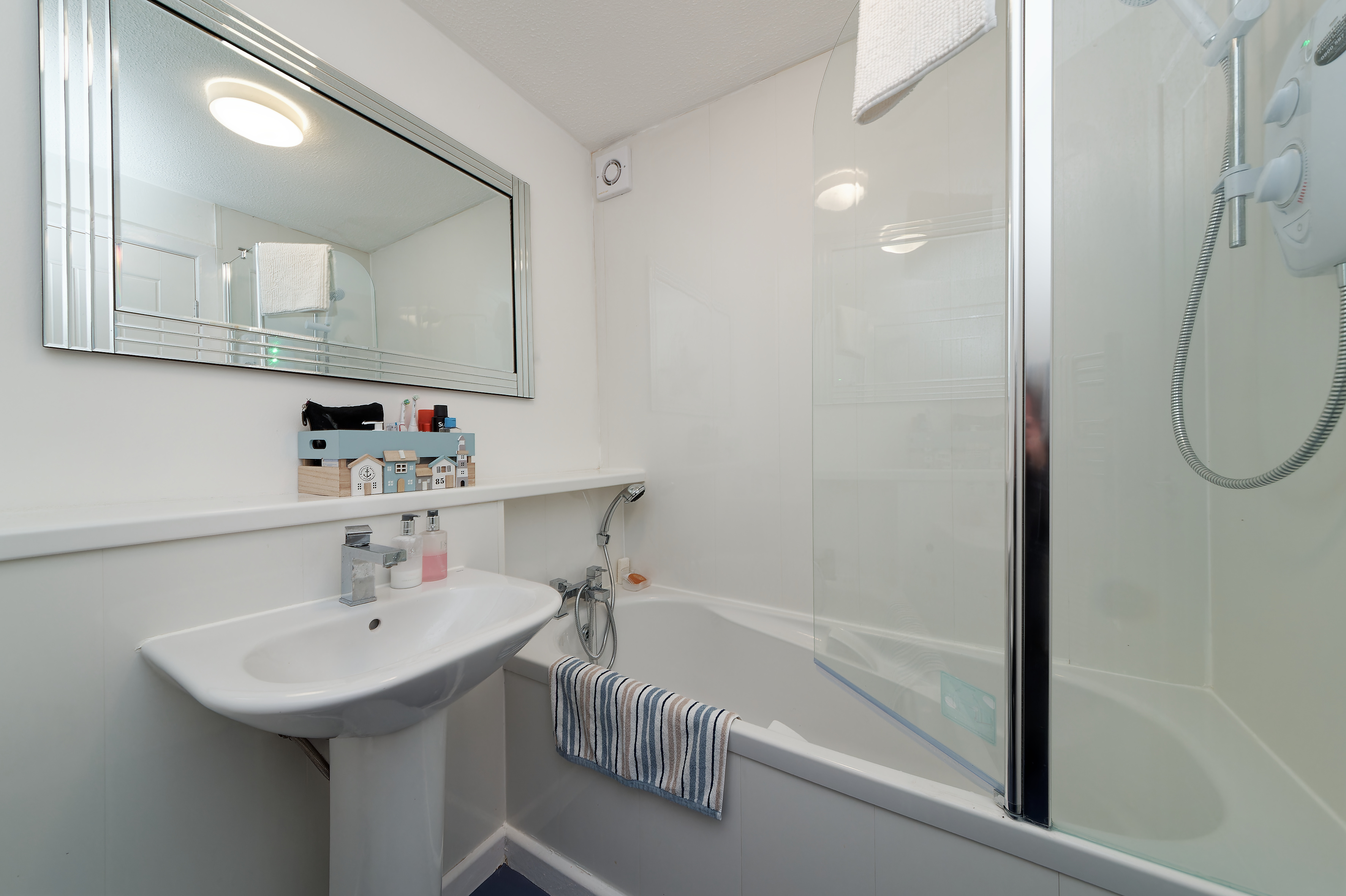 The double bedroom benefits from fitted wardrobes, providing excellent storage, while the bathroom is finished with a three-piece suite and an over-bath shower.